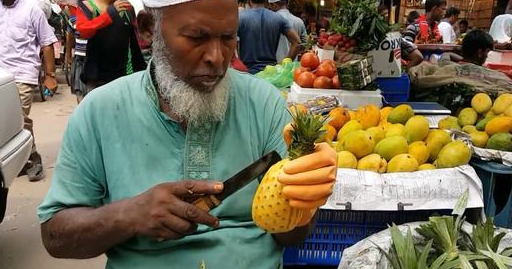 本来买了这么多的水果,还以为怎么着也得2000卢比(RMB200元)左右了吧。但是让我没有想到的是,老板却只收了我450卢比,当时就有点懵了,这450卢比也才45元左右啊,我可是买了5个大菠萝6斤大芒果外加三四斤的木瓜的啊,怎么会这么便宜呢?这印度的水果还真是实惠啊!