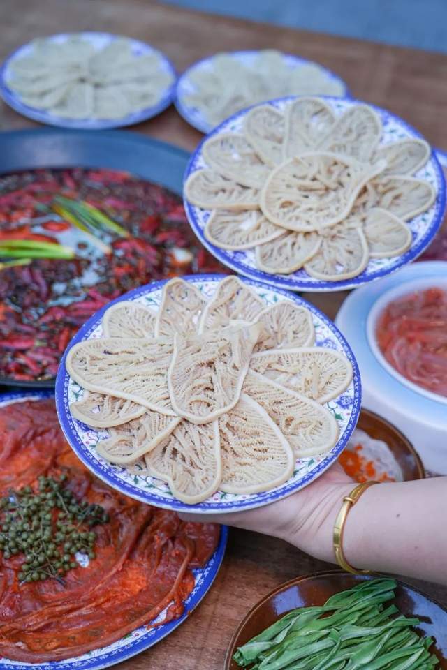 热辣氤氲的锅底里,这里的手工毛肚、千层肚!真就是和这个热火霸道的锅底最好的回应!
