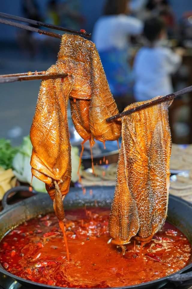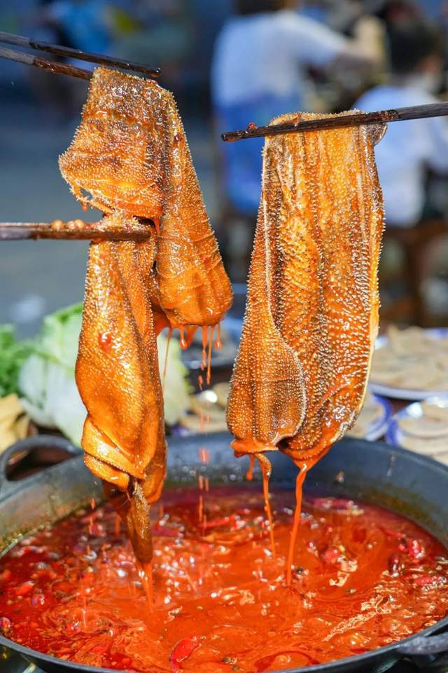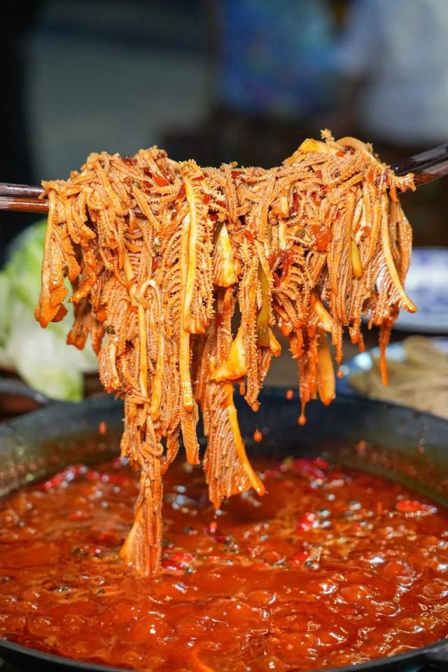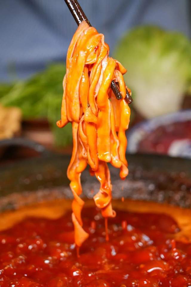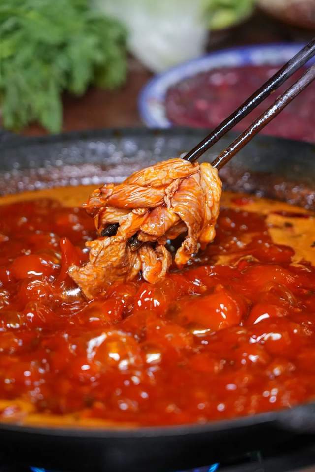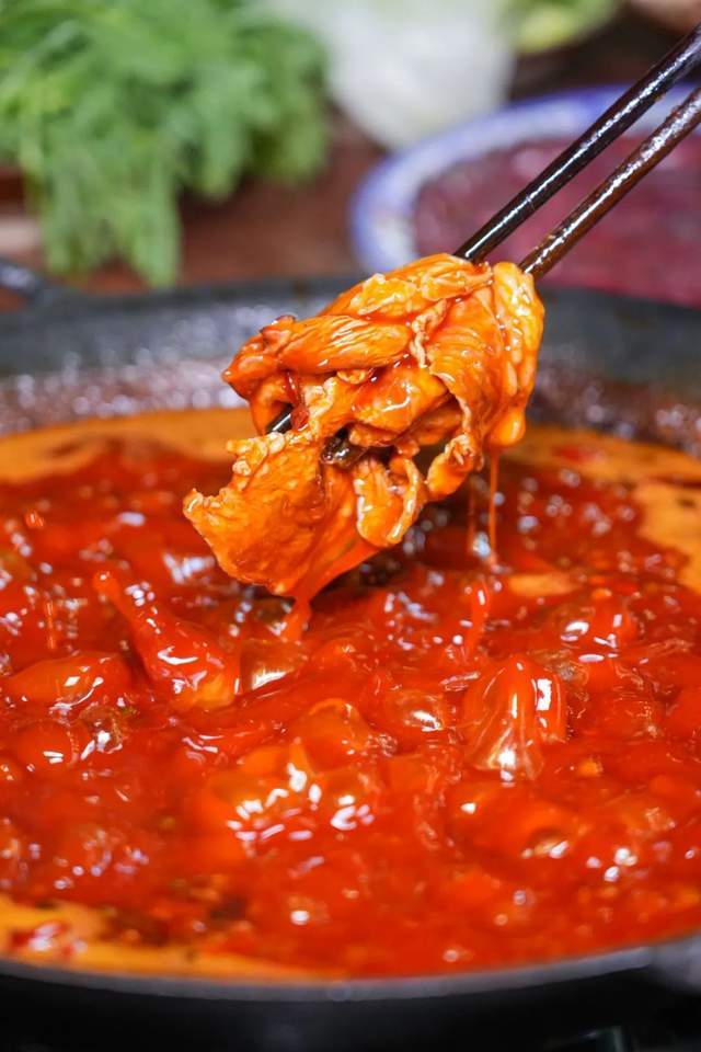 一筷子挑起千层肚、大片的鲜毛肚!滚汤的红油油的锅底里,践行“七上八下”方针!吹一吹,在口中“吸溜”一声!