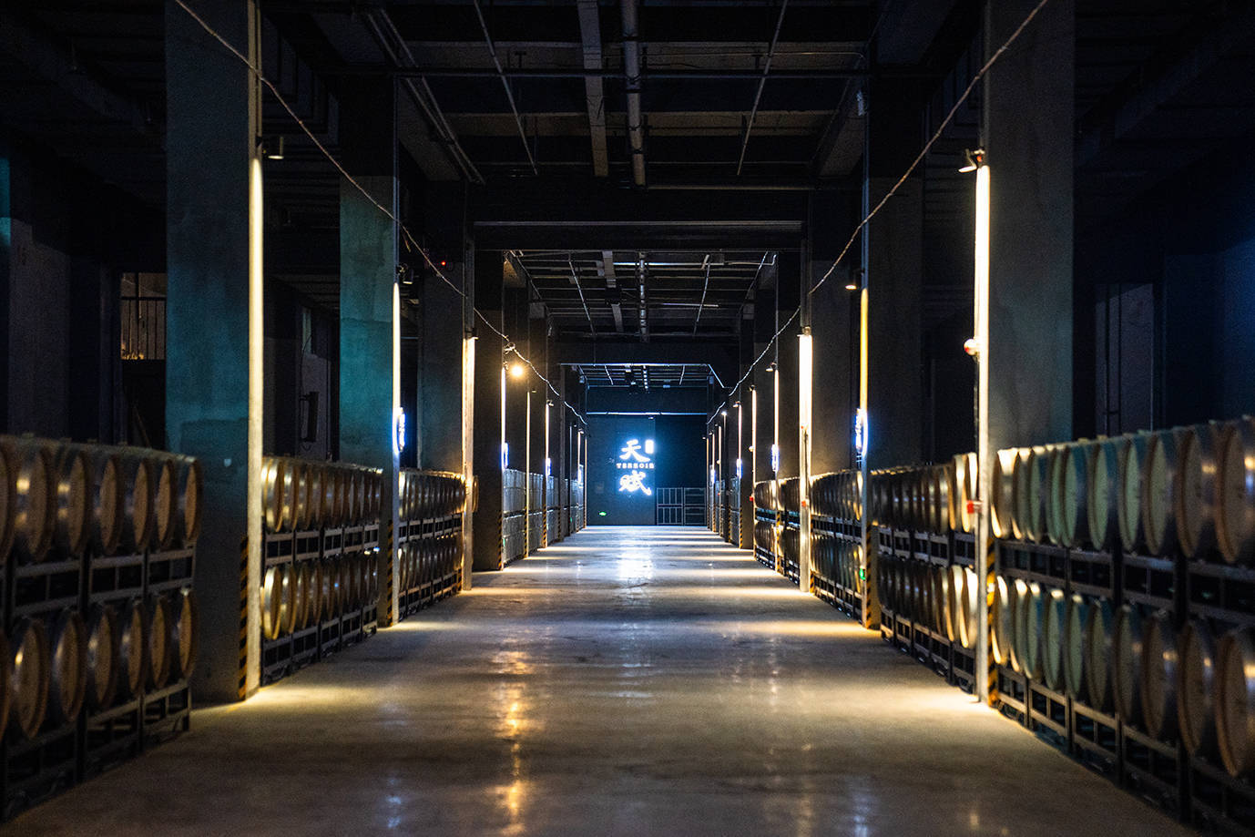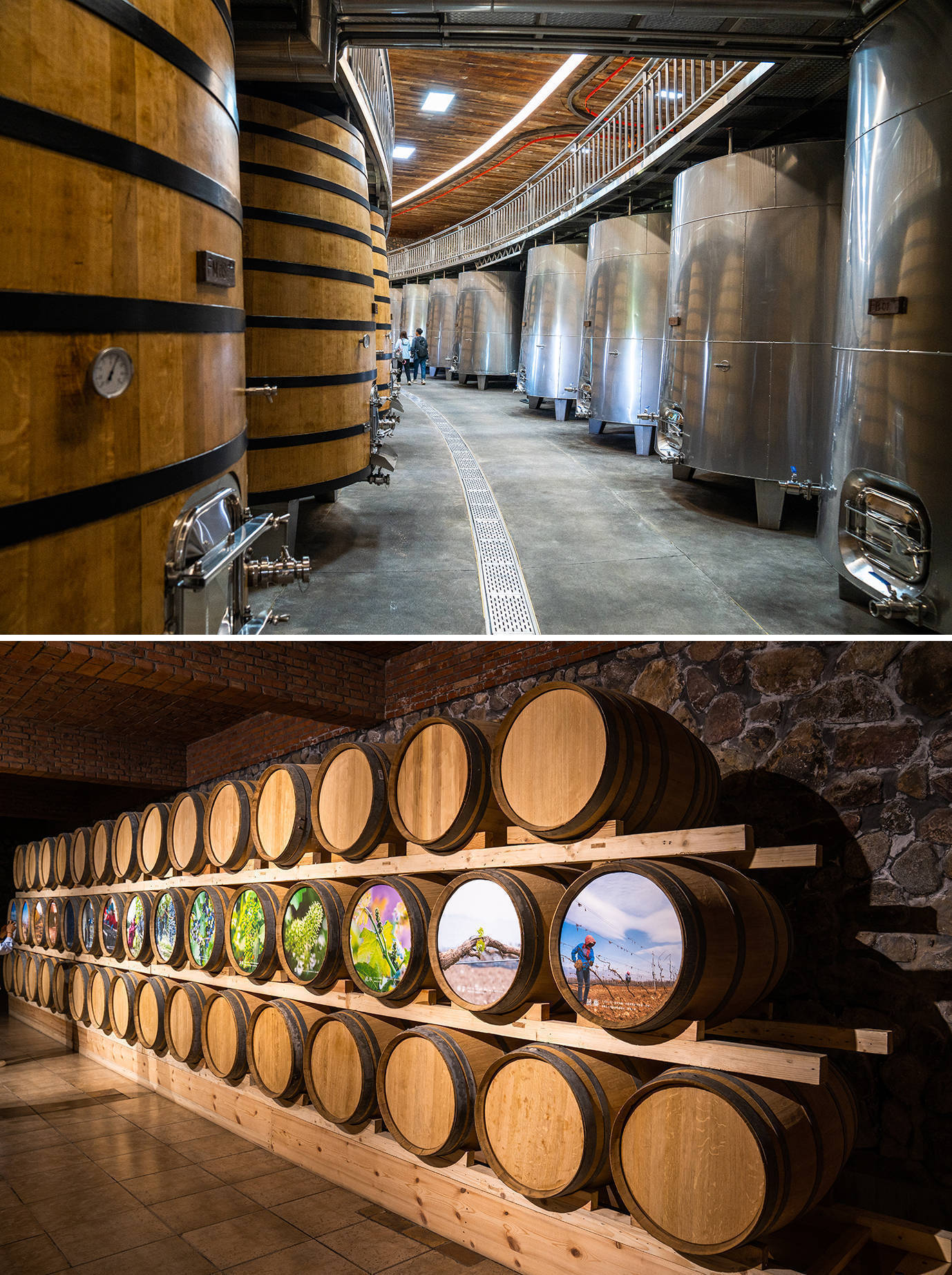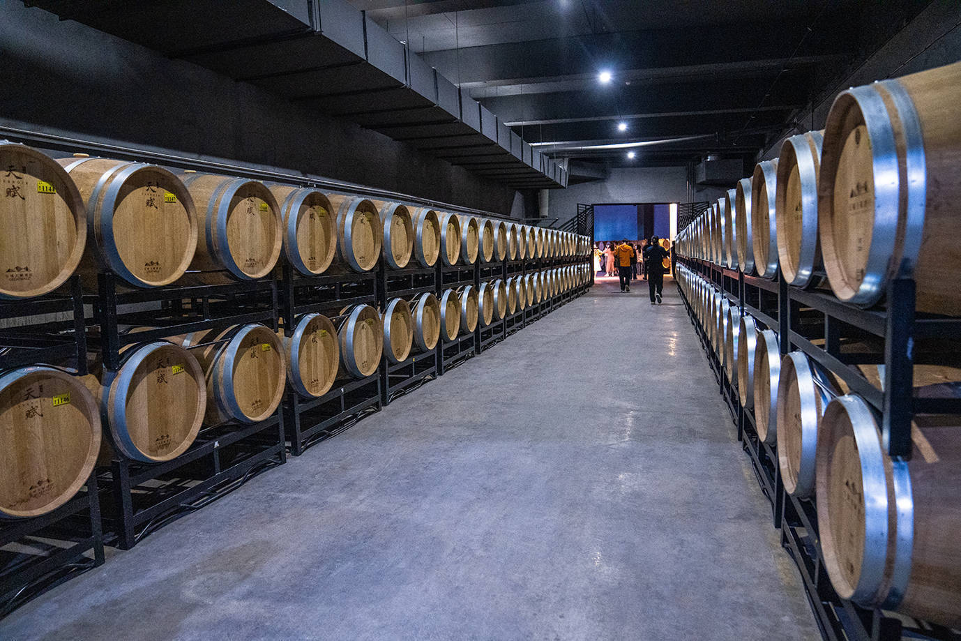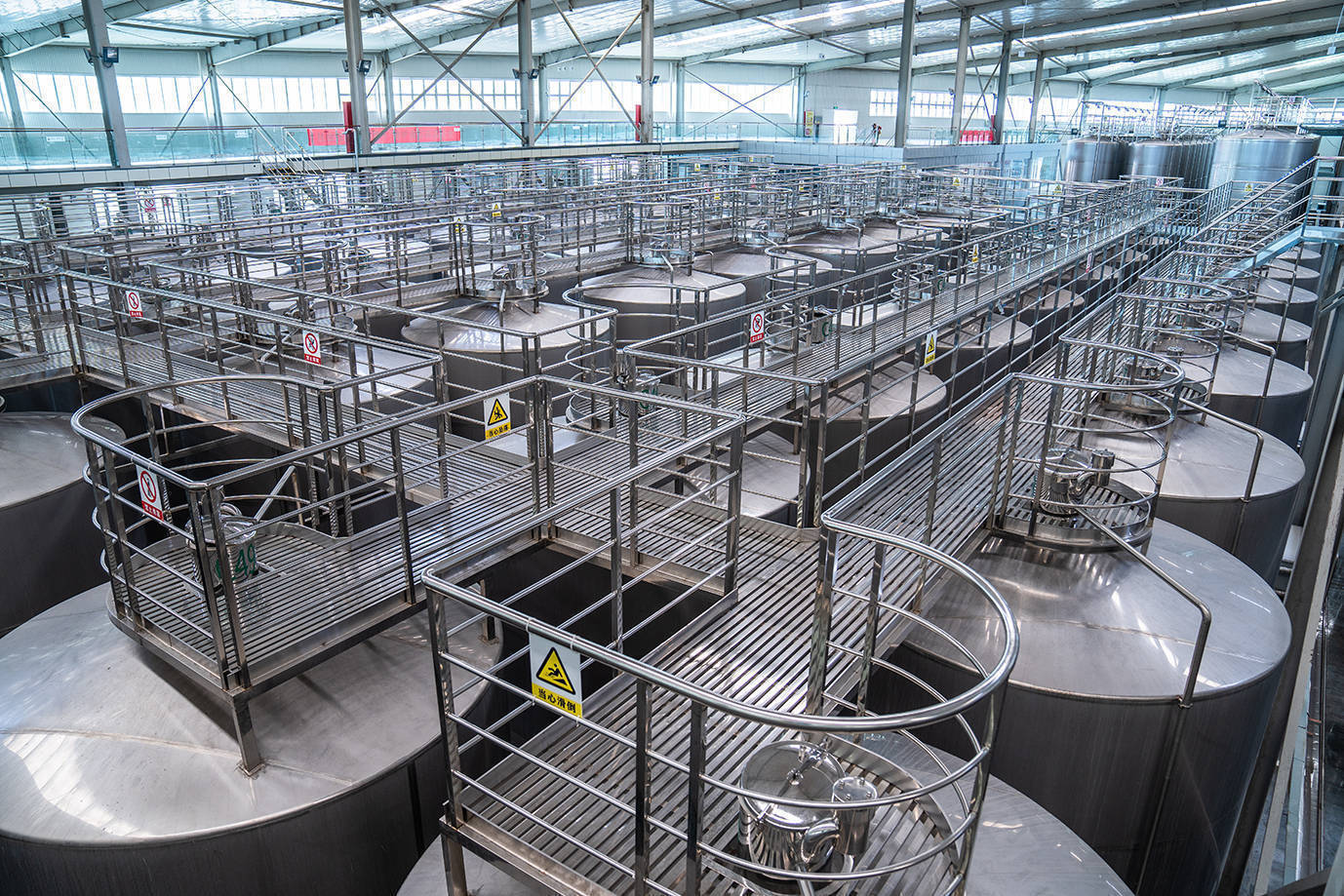 酒庄内部有着庞大的生部车间,里面密密麻麻摆满了酒罐,最大的一种可装300吨酒,年产葡萄酒2万多吨,地下酒窖更是存满了葡萄酒,充分展现了中粮的实力。