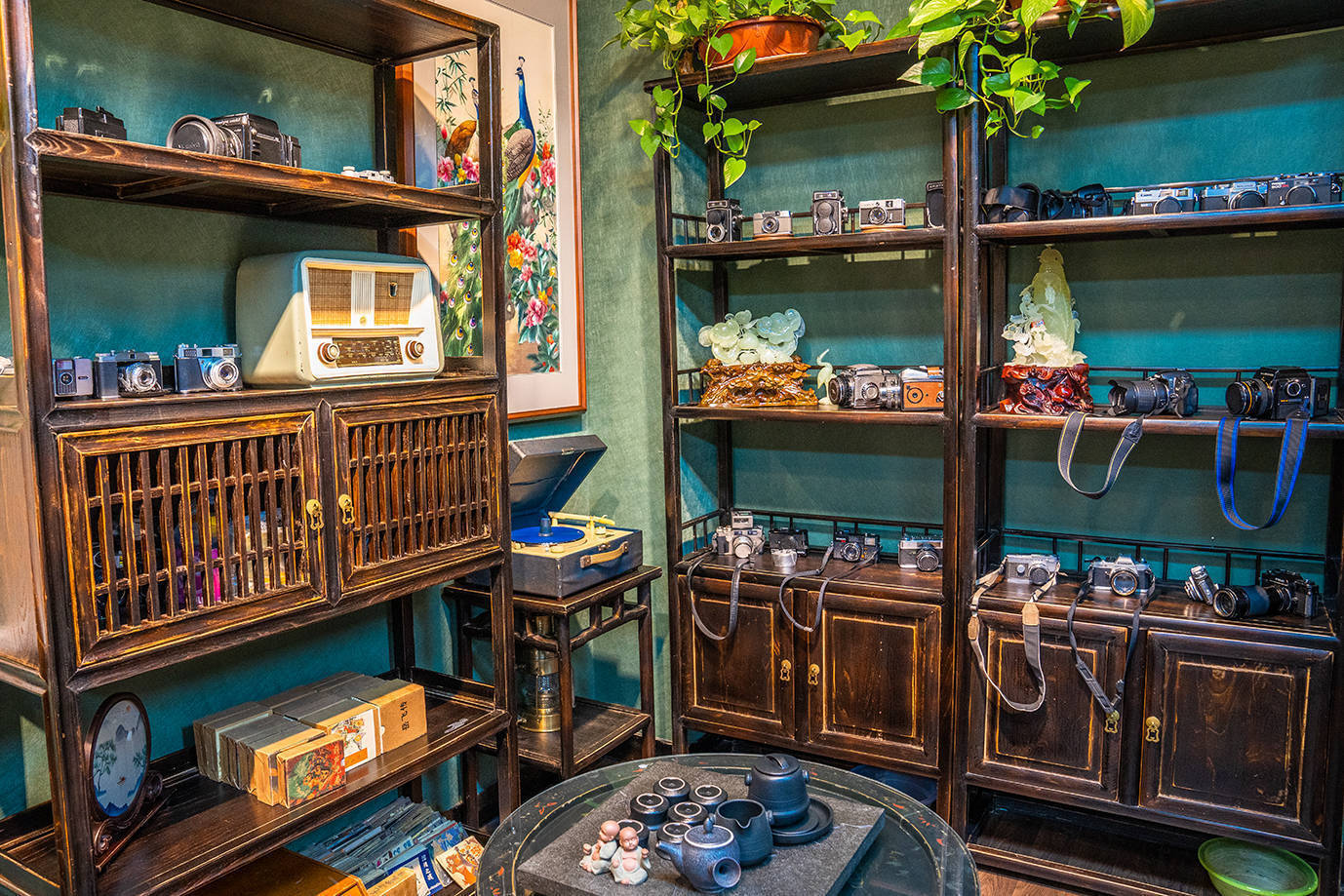 不同的是,在酒庄内还有一个收藏馆,这在其它酒庄可不多见。馆内收藏有各类老物件:家具、摆件、书籍、生活用品等,其中照相机的数量最多,有着多个年代、多个品牌和种类的照相机,非常值得一看。