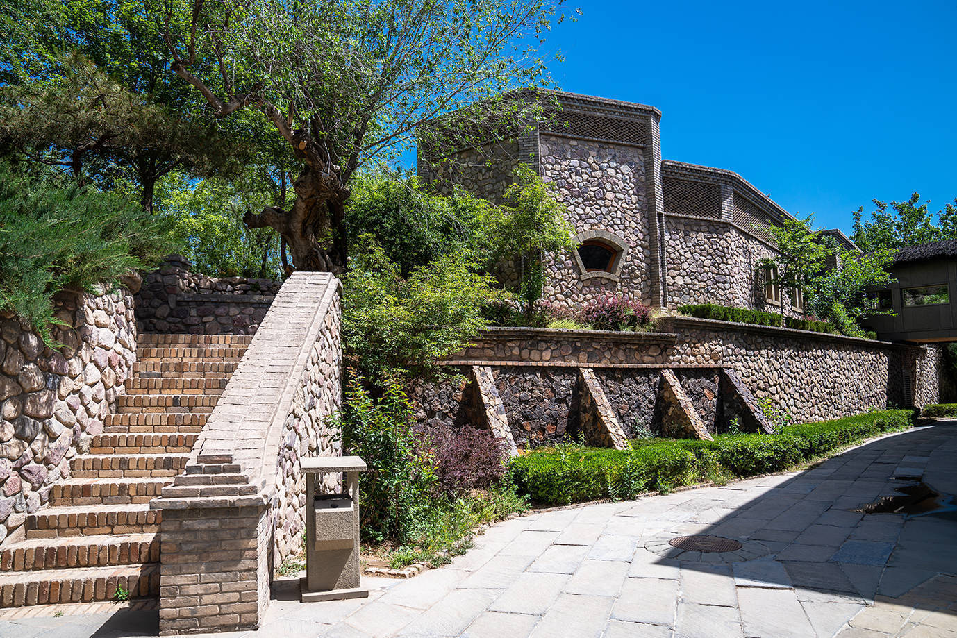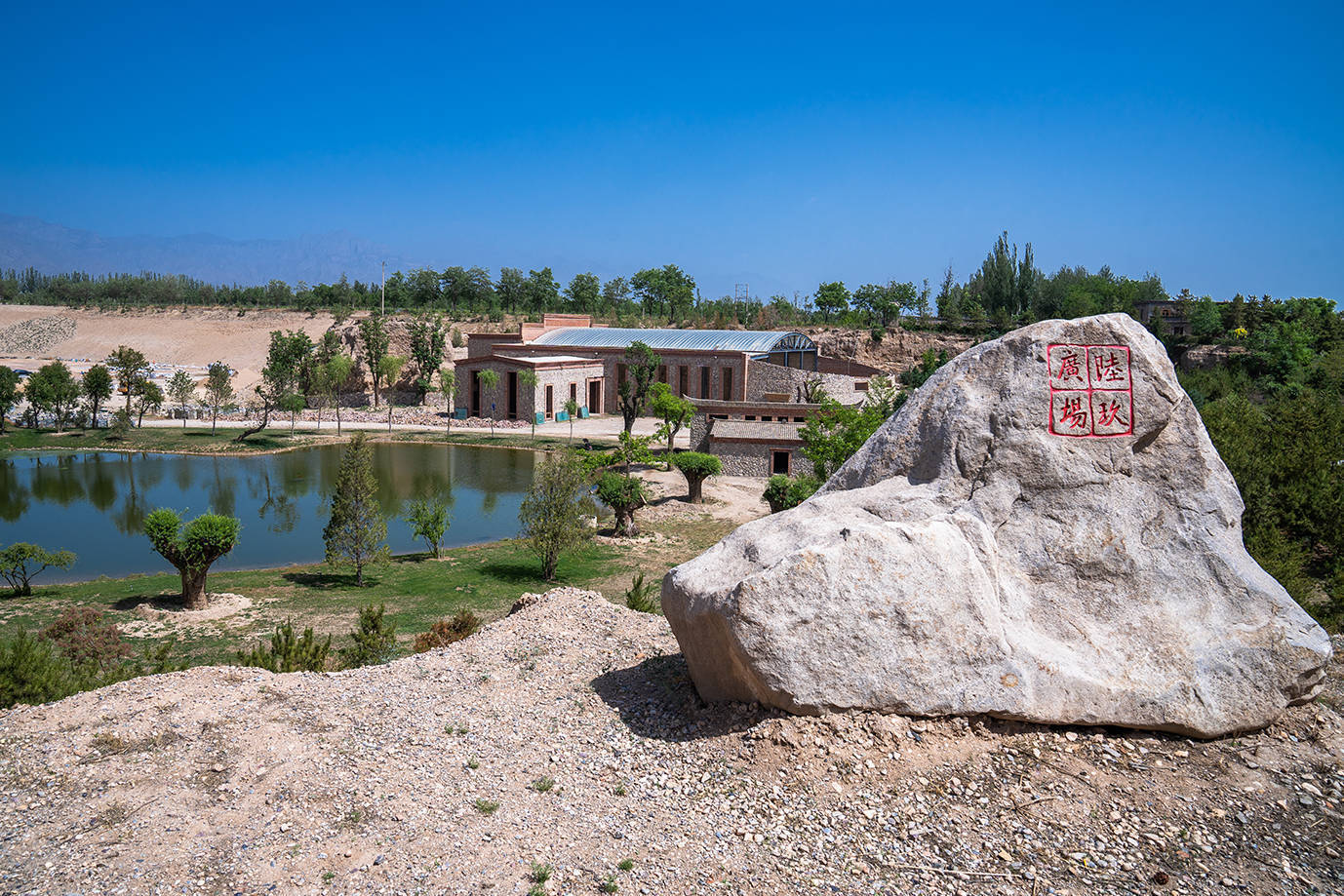说到志辉源石酒庄,还有个故事:它结缘于贺兰山下18000亩的砾石地。酒庄的位置原先是一个被废弃的砂石矿场,经过重新设计、改造,将废石、废坑等重新启用,利用采空沙石区的高低地势,建造了复式的酒庄。