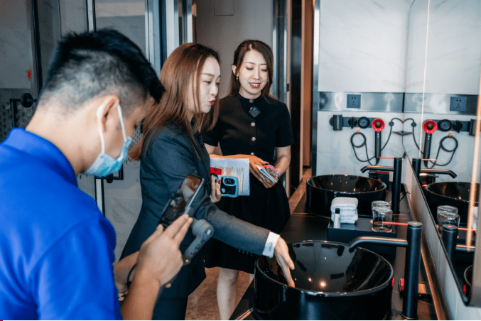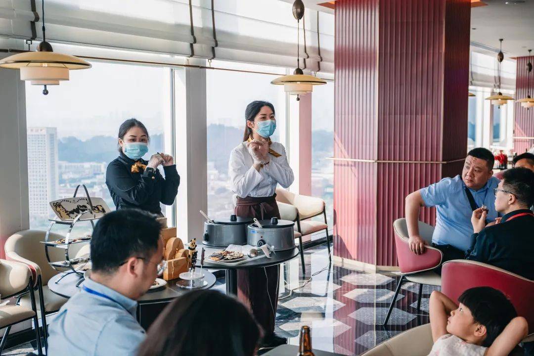 在参观完酒店客房及整体环境后, 在OUIBAR+KTCHN安排了创意体验区,加入Godiva歌帝梵®巧克力课堂、Bialetti比乐蒂®带来的手冲摩卡咖啡壶,以及Moming沫茗®康普茶发酵气泡茶的妙趣体验。传递精致、品质、潮流的趣意DNA,以创新的生活方式,给旅居者提供有活泼、有趣的生活理念。