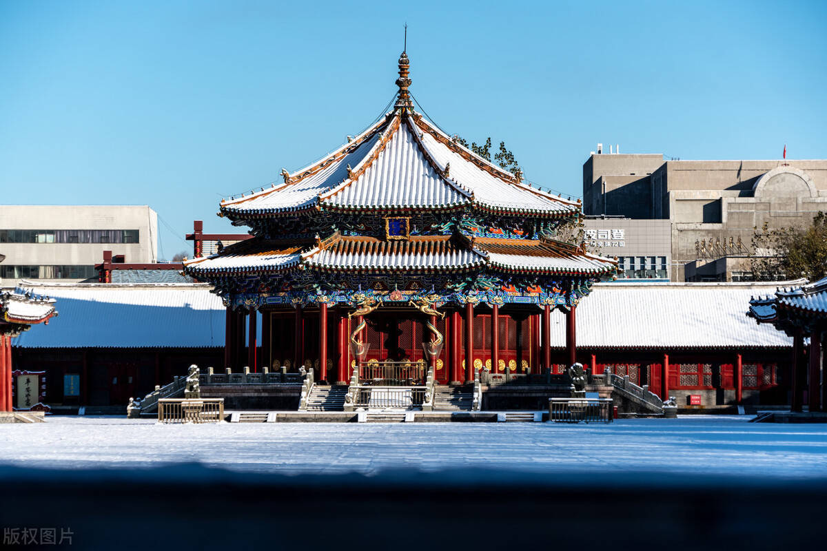 我们经常在网上看到沈阳故宫的一个亭子的图片就是这里的八角殿,门口 两个柱子上,有缠绕着飞舞的龙,爪子都是朝上的,而这殿宇的雕刻也十分精美,里面还有宝座、熏炉等很多东西。去到那里,肯定是只想拿起手机或者相机拍照的。