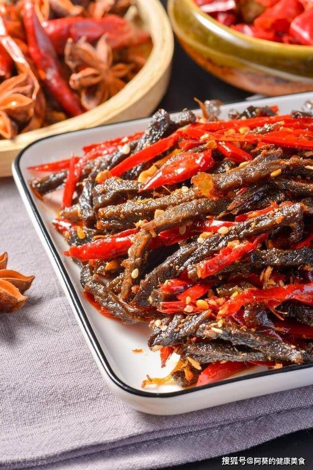 湖南的招牌菜之一是辣豆腐干,它是由辣椒和豆腐干混合拌炸制而成的。