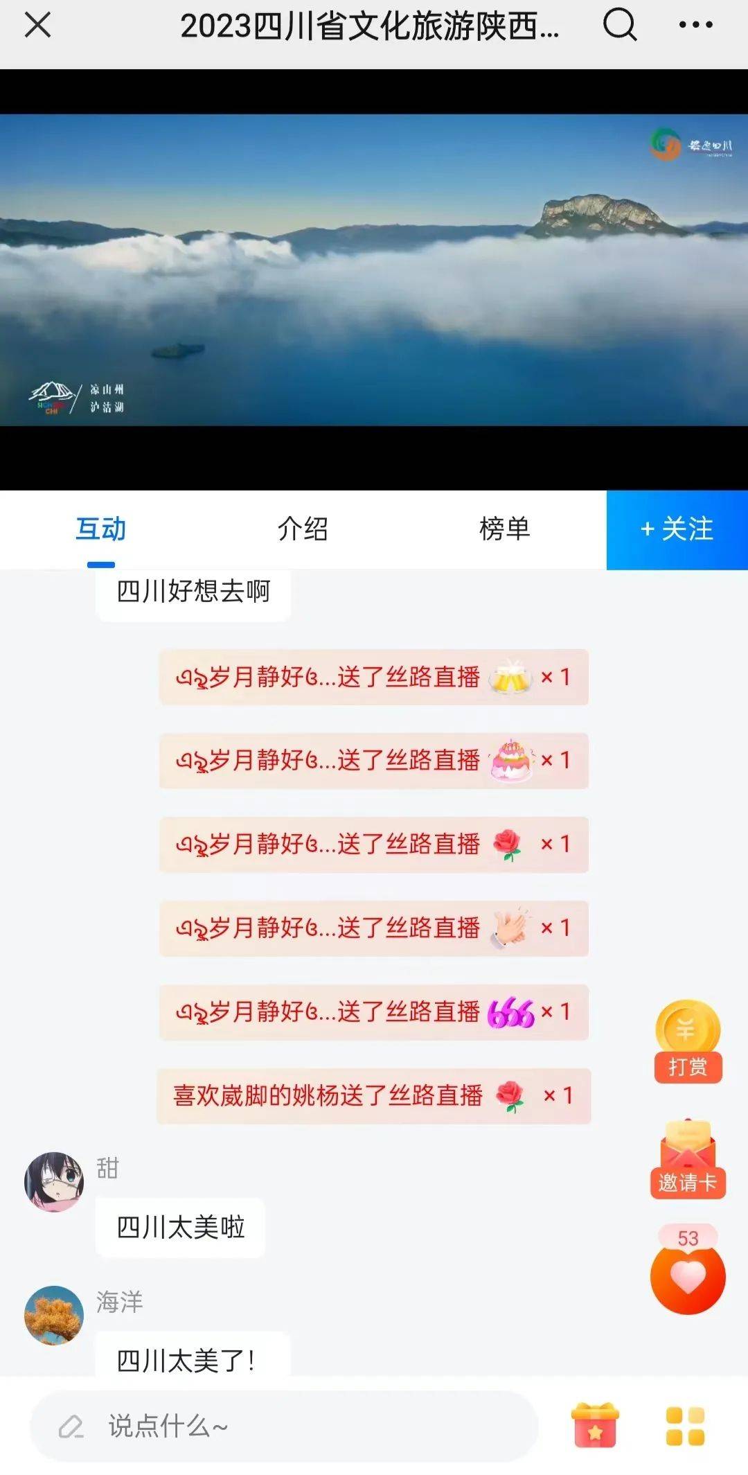 风景以外,历史人文四川也毫不逊色,作为三国蜀都和古茶道旧址,从直播中的武侯祠,杜甫、苏东坡故居,我们仿佛还能窥见千百年前历史名家的风采,同时变脸、蜀绣、竹刻、木偶戏等非遗文化特产的展示,也让我们更深刻的见识到了四川深厚的文化底蕴,更别说还有独特的川菜文化。整场直播下来,拉满了观众对四川旅游的期待值,评论区上观众也是留言称赞四川的美景和表达了对四川旅游的向往。