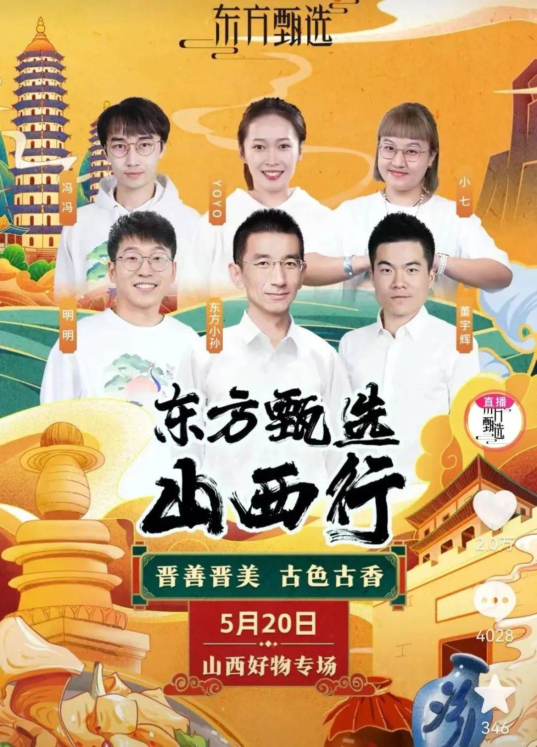 不能否认,“东方甄选山西行”专场直播活动,已成为社会公认的一场有实效、有影响的宣传推介山西文旅与好物的精彩直播盛宴!