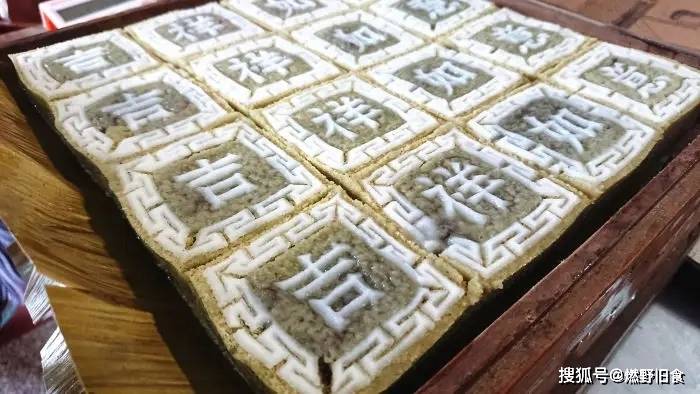 纯手工制作的大糕是余姚的代表甜点,其外形方正,上面有可食用红粉印的”恭喜发财”、“吉祥如意”等不同的字样。