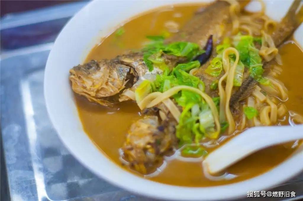 鲜活的黄花鱼经油炸而成,鱼肉香酥。面汤放入酱油,汤味浓醇。手工和面加碱,面有劲道。鱼酥、汤浓、面滑,这三个完美结合,美味至极,食后让人回味无穷。