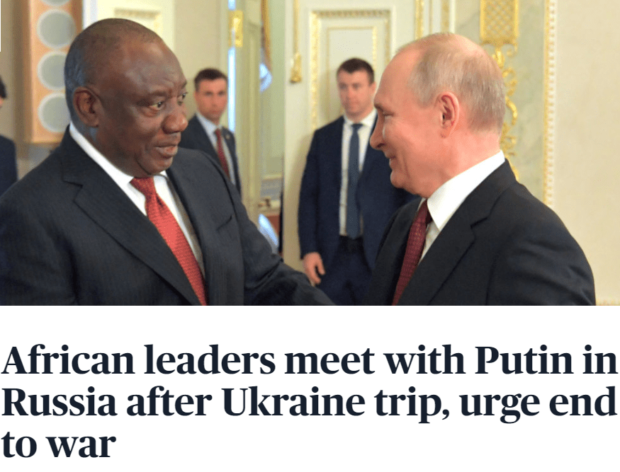据悉,代表团此次访问乌克兰和俄罗斯的目的,除了在俄乌之间担任调停人以推动和平解决乌克兰危机之外,还希望能说服俄乌两国同意向非洲增加粮食以及化肥供应。
