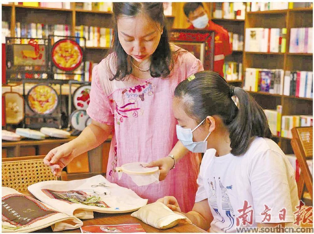 在潮州金山书院举办的“非遗青春”系列活动现场。图为学生体验潮绣。南方日报记者 黄敏璇 摄