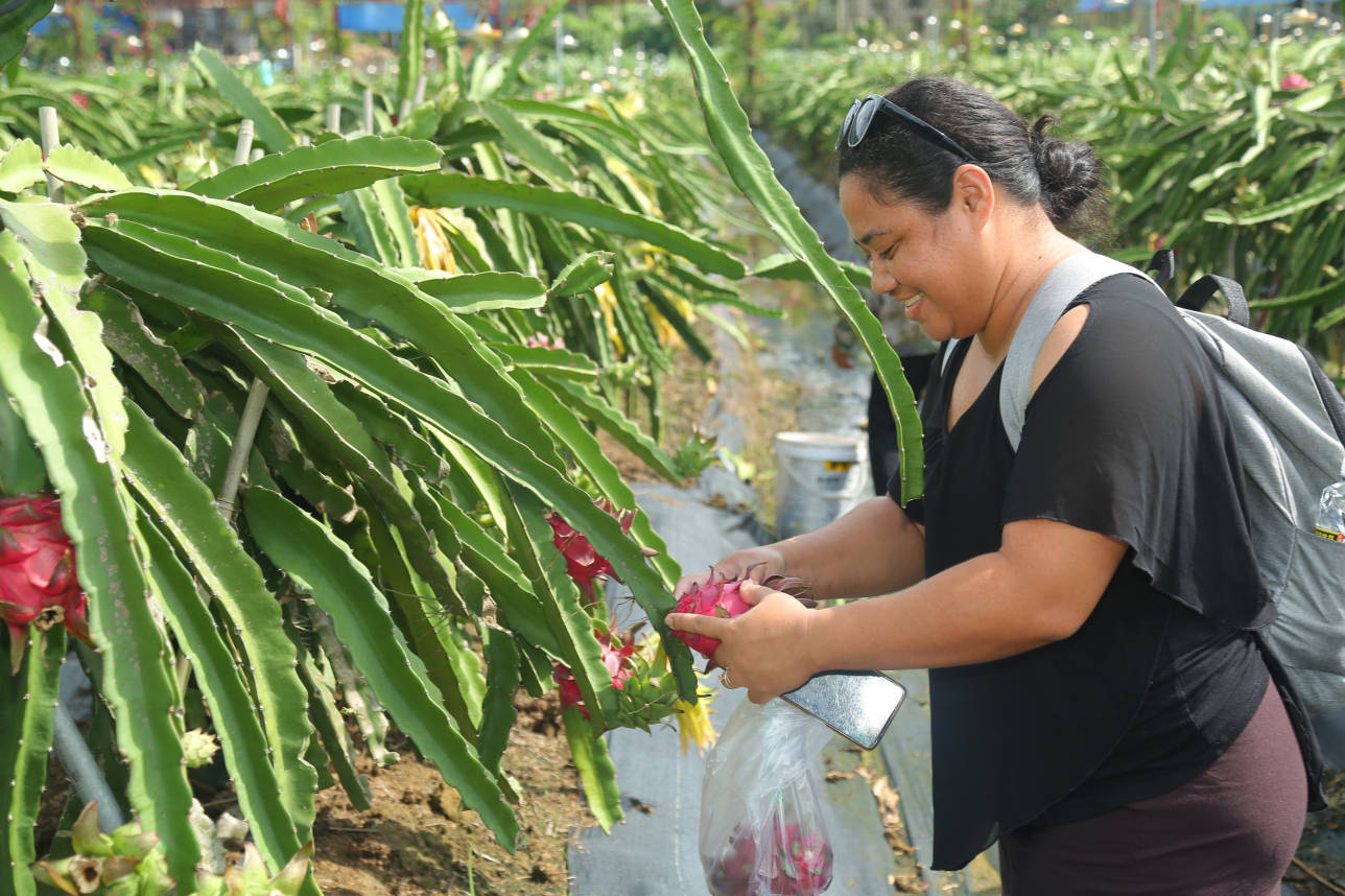 国际友人采摘火龙果