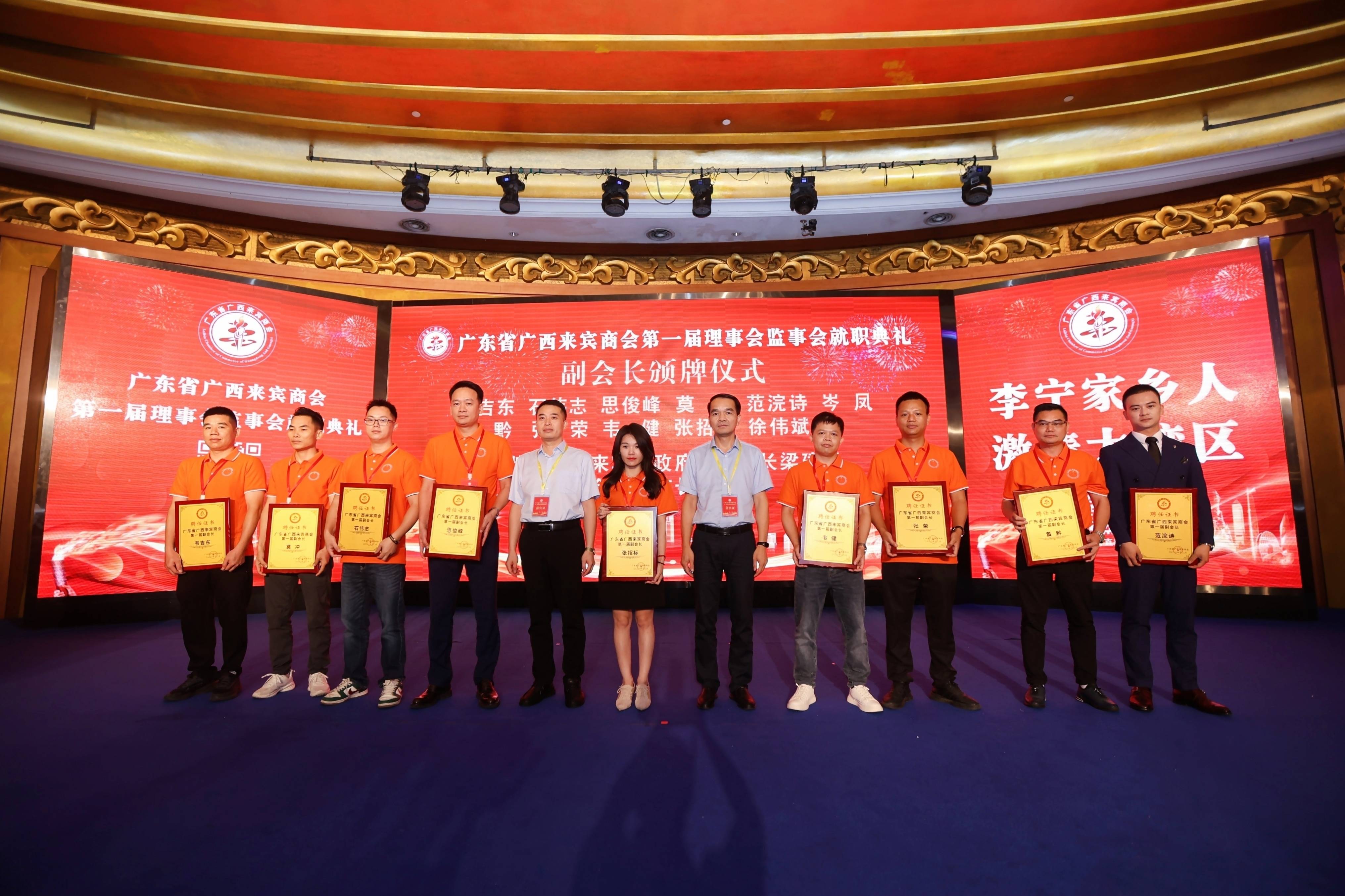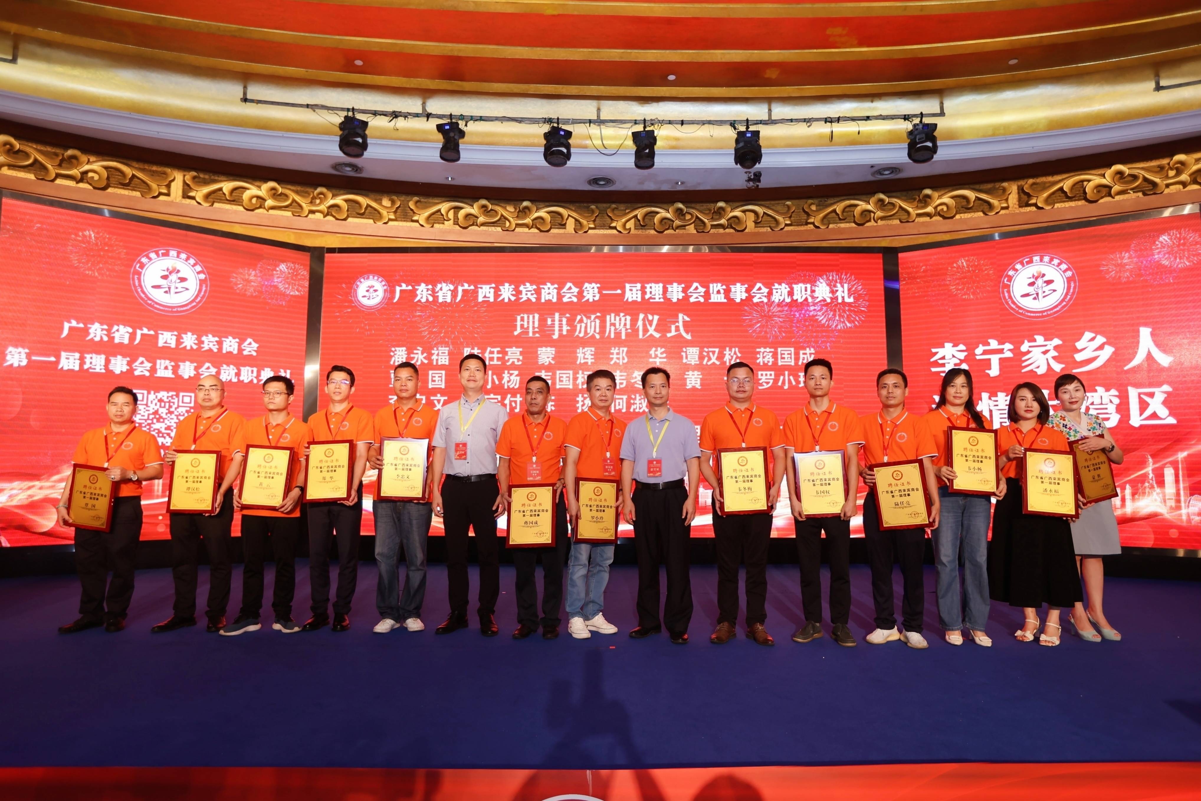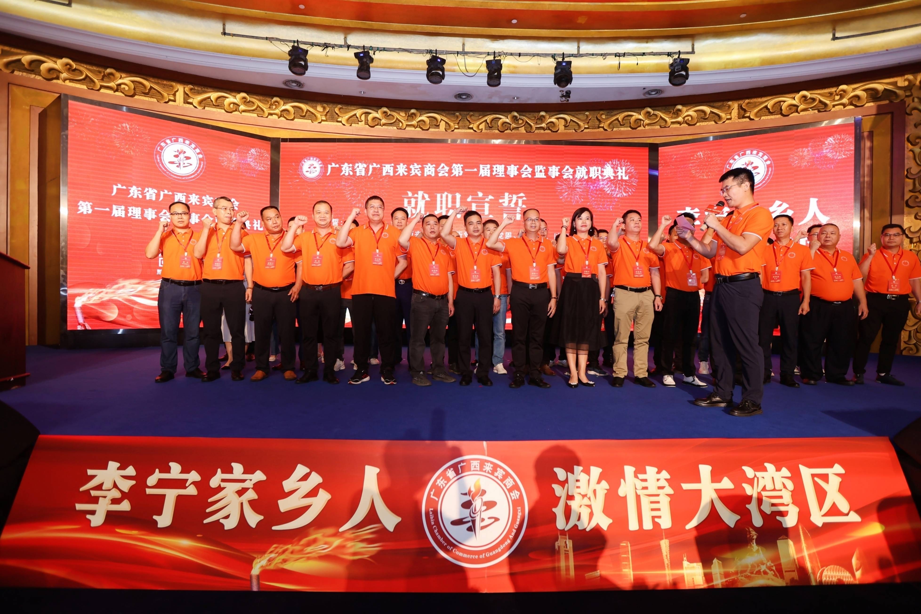 2023年6月17日,对于广东省广西来宾商会来说,是一个值得纪念的日子。广东省广西来宾商会第一届理事会监事会就职典礼在广州举行。广西区政府驻广州办党组书记、主任李葆盛,来宾市政府副市长邓应文、来宾市政协副主席黄锡萍、深圳市工商联专职副主席覃敬腾,广东省广西商会执行会长韦振杰、广东省广西商会演艺设备专委会会长戴小明、广东省广西玉林商会会长林汉、广州市广西商会执行会长莫兰贵、中山市广西商会执行会长陈必松、广州广西桂平商会会长黄良柱、东莞市广西来宾商会会长韦丁义、柳州市来宾商会会长江晴、南宁市武宣商会会长潘传兴,广东省广西来宾商会名誉会长罗敏、会长韦覃庆、执行会长蒙圣光、执行会长兼秘书长谭栋元等领导嘉宾和各商协会代表近300人参加。