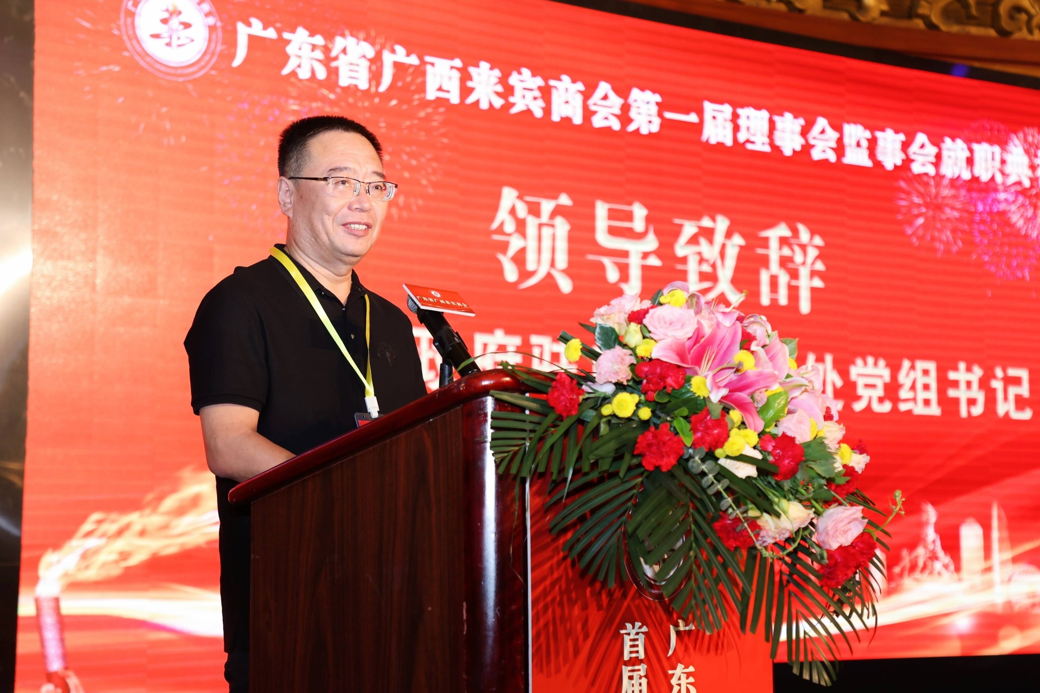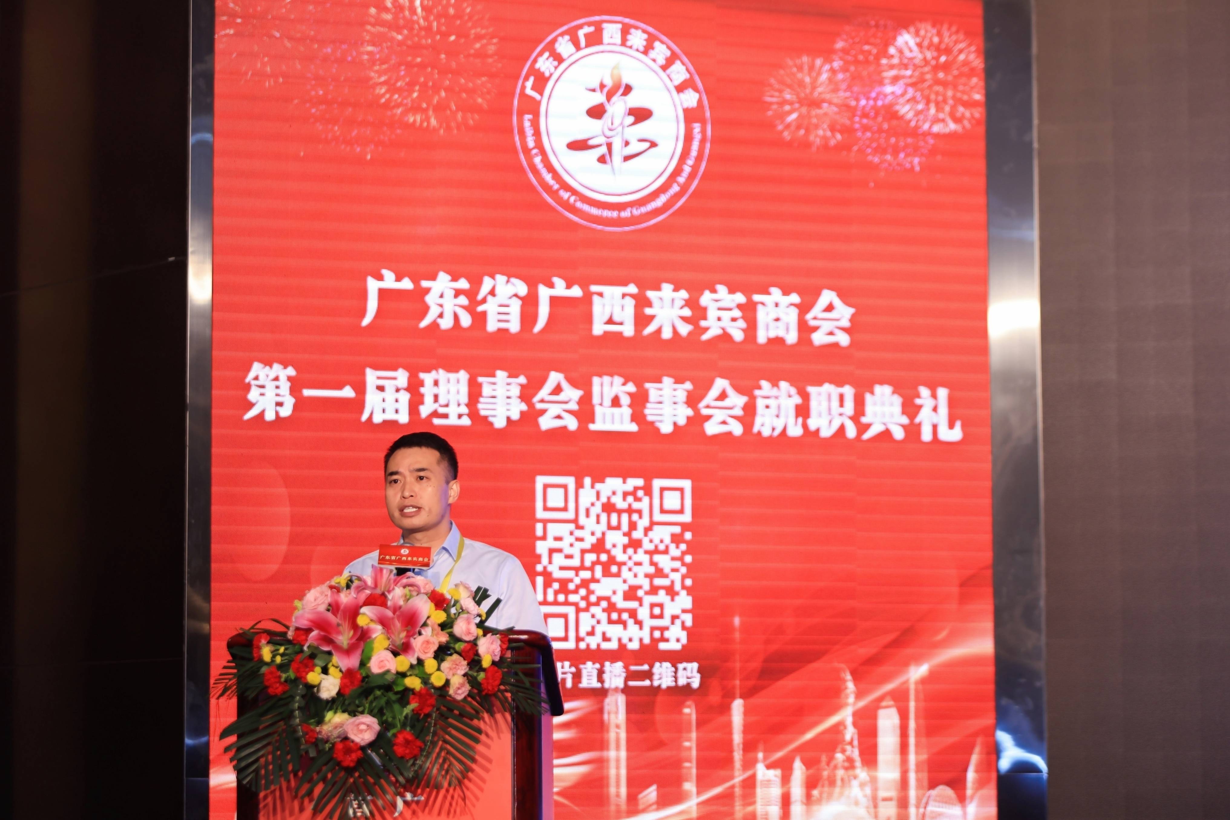广东省广西来宾商会会长韦覃庆致辞中介绍,广东省广西来宾商会是来宾市首家省外注册的省级异地商会,于2021年12月28日正式在广东省社会组织管理局登记注册,值得高兴的是,12月28日是来宾市成立地级市的纪念日,预示着商会将与家乡同命运、共发展,将成为来宾市与粤港澳大湾区商贸往来的重要桥梁。