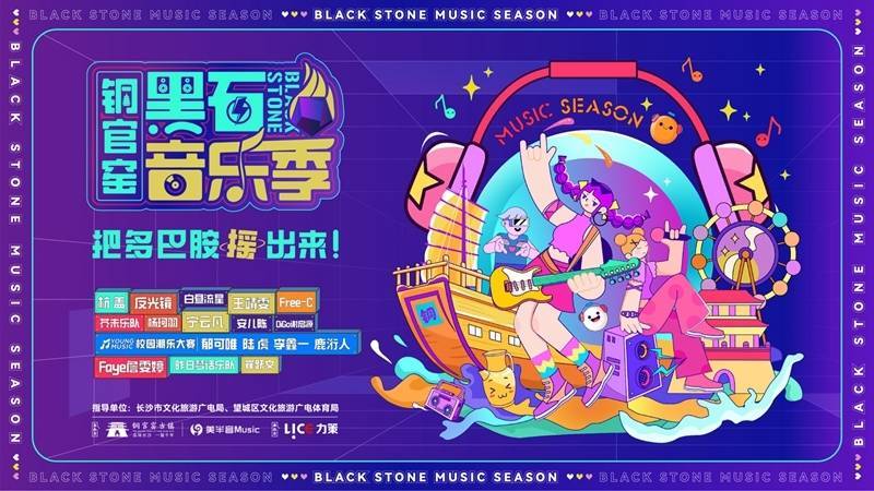 长沙铜官窑古镇副总经理张宁发布会上介绍,暑期活动分为两个部分。第一部分是 “黑石音乐季”,邀请了王靖雯、FAYE詹文婷、杭盖乐队、反光镜乐队等17组国内知名音乐人及乐队,从7月8日至23日,每个周末为游客送上音乐盛会。除了明星歌手,还有校园青春力量,7月16日将联动了QQ音乐的YOUNG MUSIC校园潮乐大赛总决赛,邀请了郁可唯、陆虎、李鑫一、鹿洐人4组艺人现场助力。