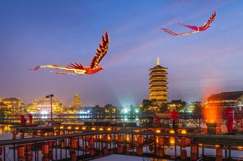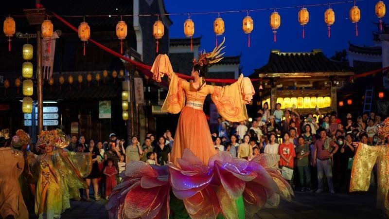 近期,铜官窑古镇活动不断。在今年端午节小长假,铜官窑古镇就启动了第二届仲夏汉唐节,开展了国风演艺、沐兰集市、旱地龙舟赛等一系列活动,部分活动目前还在延续。值得一提的是,在此前刷屏朋友圈的“火凤飞舞”基础上,升级的“龙凤呈祥”飞行表演也于近期上线,与打铁花、音乐水秀一起,为游客端上一场空中视听盛宴。