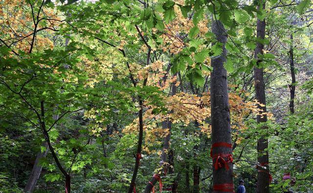 因为时间问题,我们并没有按部就班的慢慢爬山,而是要去缆车处坐缆车到山腰。从鱼塘处到乘坐缆车的地方,一路都是枫叶。只可惜我们去的时间不对,如果到了国庆之后,枫叶都红了,那就这条枫叶大道也足以吸引众多人的眼光了。