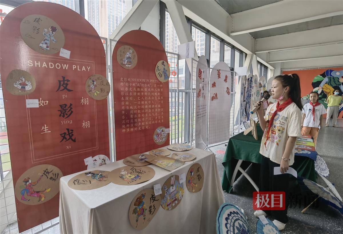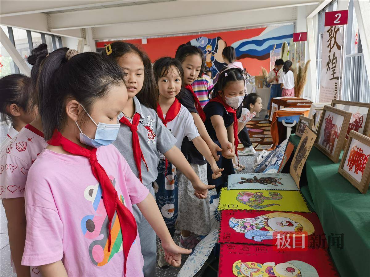 当青花瓷遇上了皮影戏,色彩与光影牵手做起了游戏。当十二生肖从二十四节气里跑过,壁画中的神女听着传统戏曲,飞天而来……6月16日,一场别样的国风艺术节,在武汉市汉阳区钟家村实验小学拉开序幕。艺术节上所有展出的作品,均由该校学生完成。学生们在充满浓郁国风的作品中,沉浸式体验了传统文化的魅力。