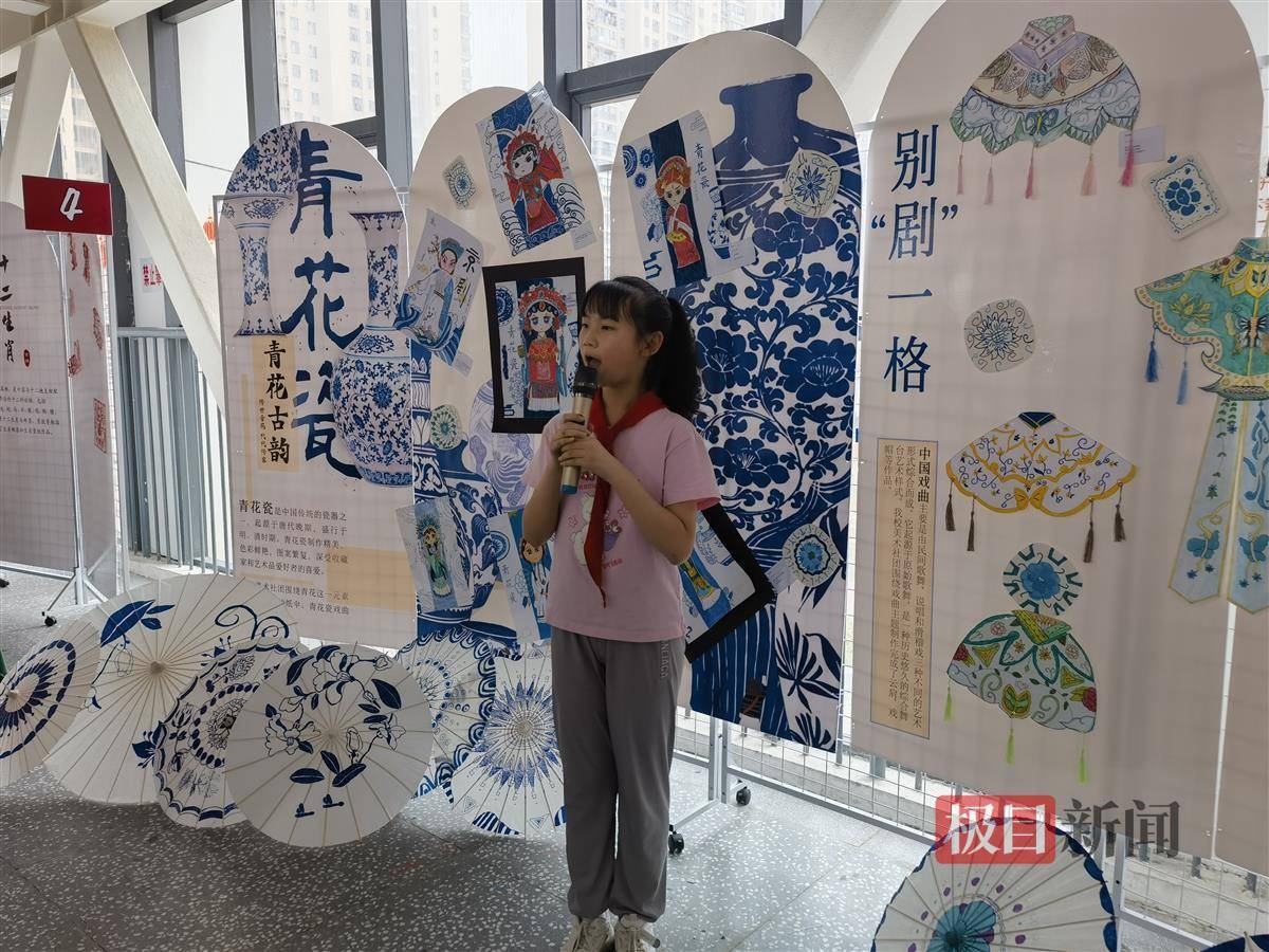 经过讲解,观展的同学对眼前的一个个巧手绘制的美术作品有了更深入的了解,也被中国传统文化的艺术呈现形式所震撼。一位观展的同学,指着眼前的青花瓷戏曲娃娃饶有兴致地说:“戏曲服装原来可以这么好看!”