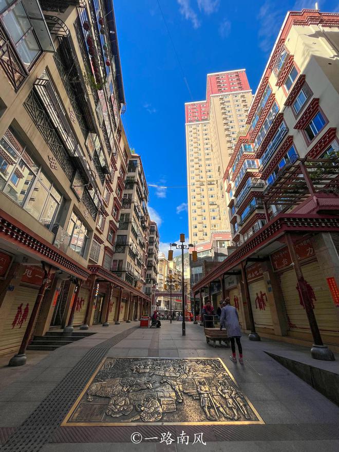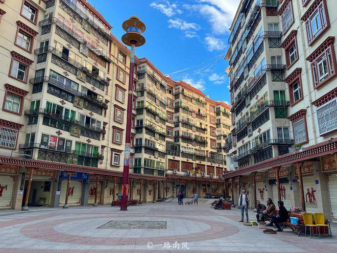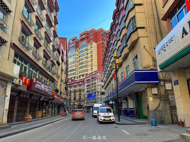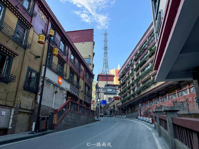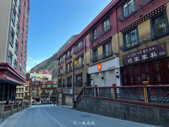 街道两旁都是简约但不落俗套的藏式建筑,色彩多样但不艳俗。