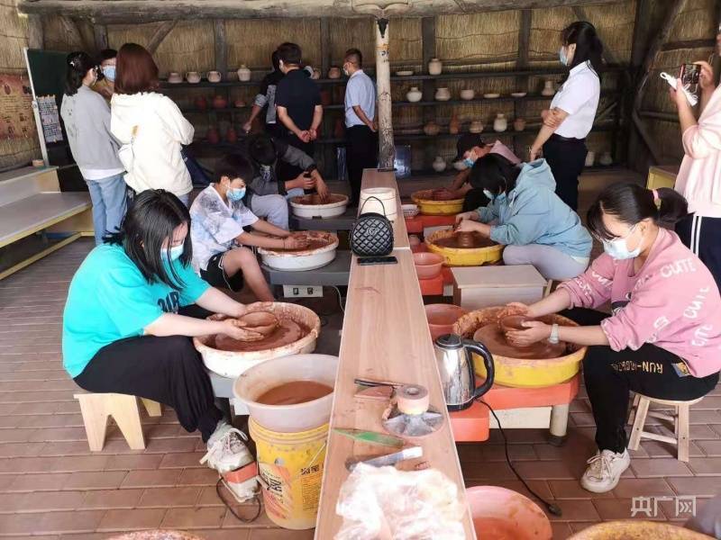 游客正在制作彩陶(央广网发 毛亚薇 摄)