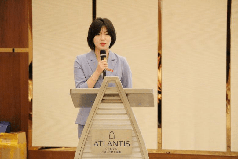 三亚亚特兰蒂斯人力资源副总裁杨萱致辞(学校供图,央广网发)