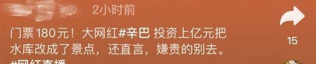 对于大家吐槽最多的门票问题,有人不赞成收门票,认为景区内并没有什么多少实质看点,本身的价值与售票不符合。也有网友认为收门票是合理的,毕竟现在哪个景点不收门票呢?为此,辛巴本人还在直播里回应过门票的争议,直言“嫌贵别去”。