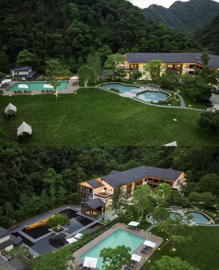 青山环绕,绿树成荫。建德“谷雨山居”就隐藏在美丽的新安江森林公园之中,地处浙江省建德市新安江街道横坑坞。距国家AAAAA级风景区千岛湖只隔一条隧道,乘建德市区城市公交1路车到横坑坞路口再步行5分钟就到达,建德城区自驾只需3分钟车程。 “谷雨山居”设计灵感源自古代篆书元素,全智能、全山景。拥有山景、园景、亲子、家庭、商务等房型、大幅玻璃窗和观景阳台更是将山野度假松弛感直接拉满。大床房,舒适的吊椅和视野广阔的山景浴缸让人很难不对它印象深刻;亲子房,标准的双人床加上榻榻米床,挂在窗上的小巧御守,还有多样式的浴衣等等都是设计的用心之处,让你感受到深山老林中的深幽与静谧,人在室内也能与大自然亲密接触。