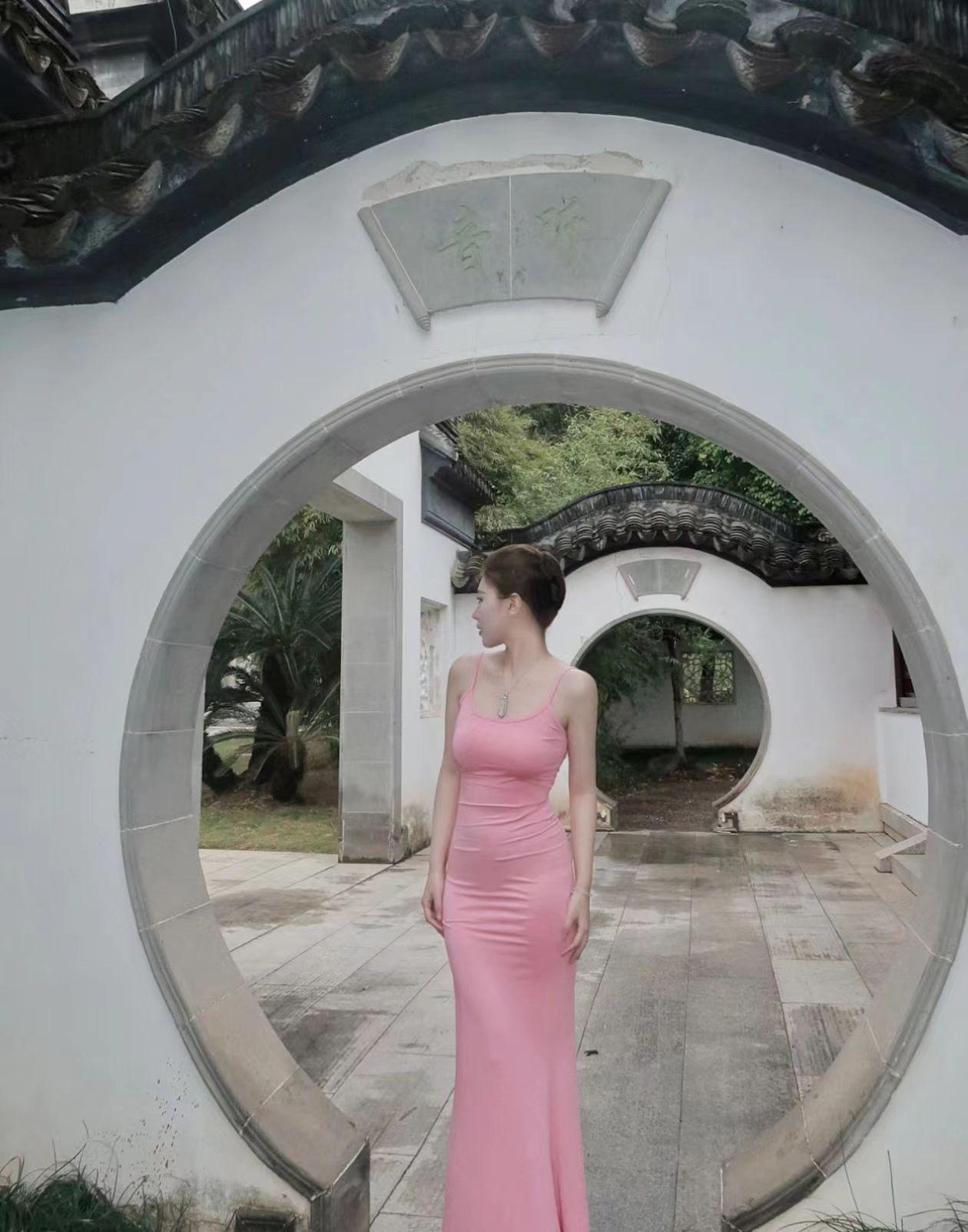 今天我穿着一条粉色的吊带长裙,简单却不失优雅。那柔美的色彩与皮肤相映成趣,让人显得更加迷人动人。裙摆轻轻拂过双腿,流露出婀娜多姿的身姿和成熟的美。长发散在肩上,微微波曲,给人增添了几分清新脱俗的气质,让人不自觉地想多看几眼。