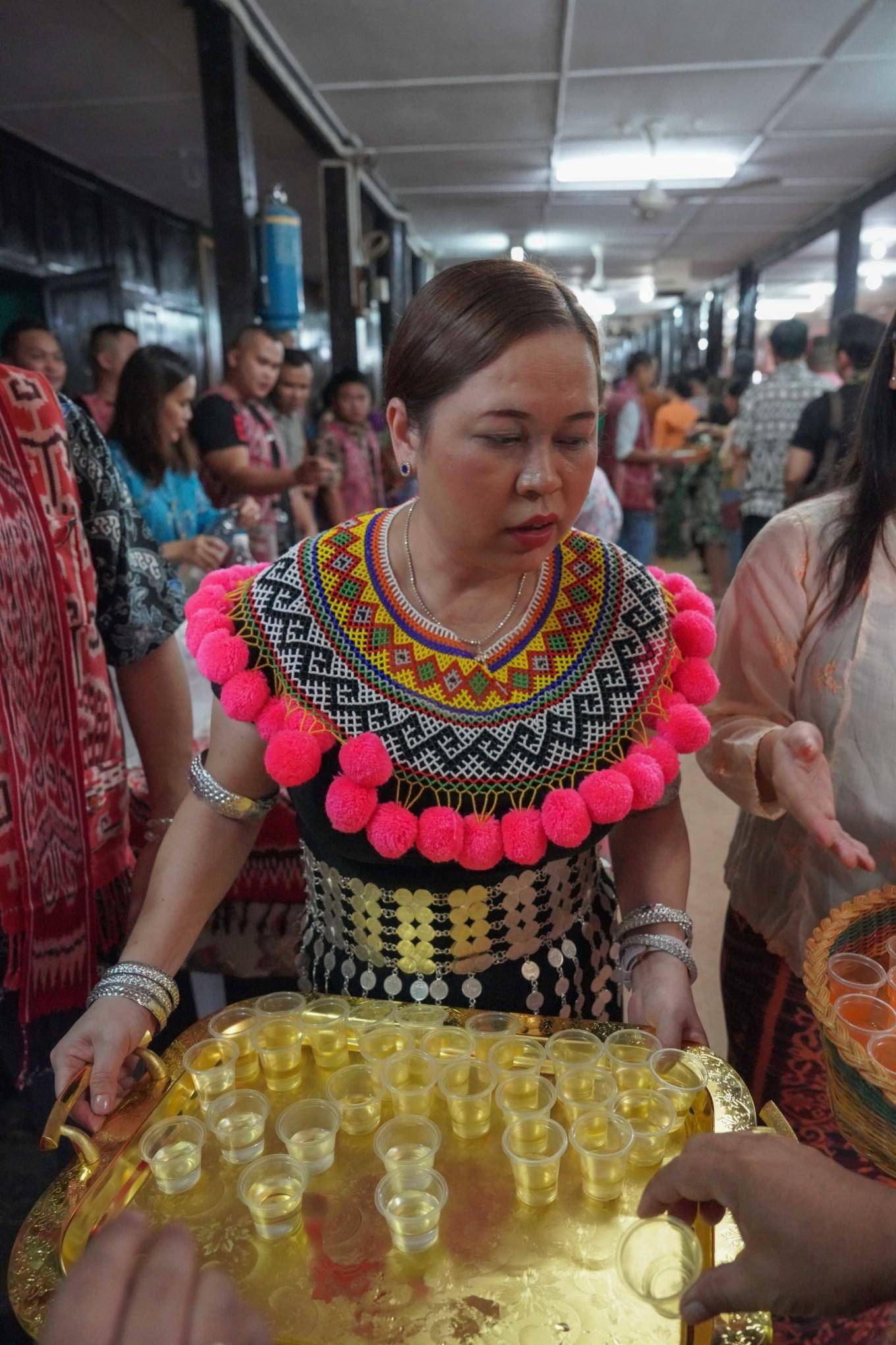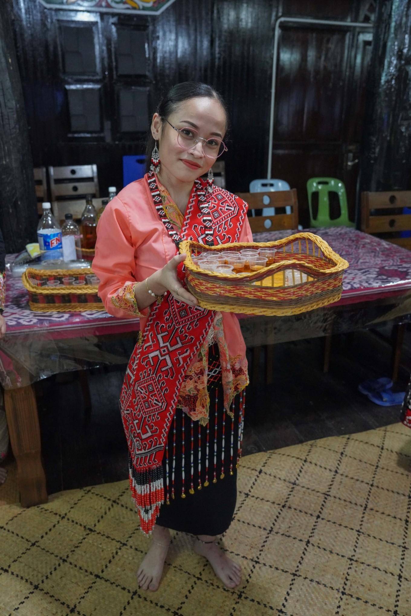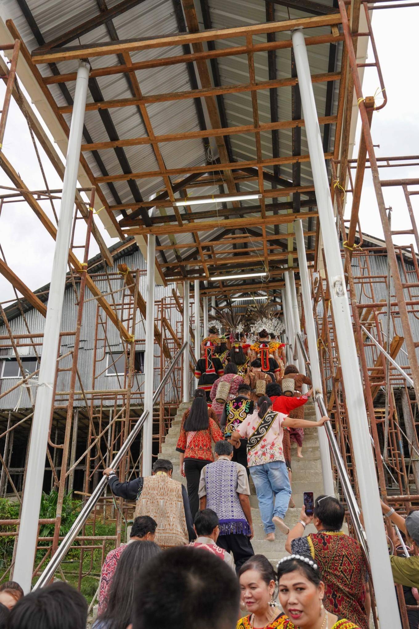 在祭祀仪式结束后,我们跟着人流,回到长屋long house,需要脱鞋进入,登上一段高高的楼梯,就到达二层的长屋内了。