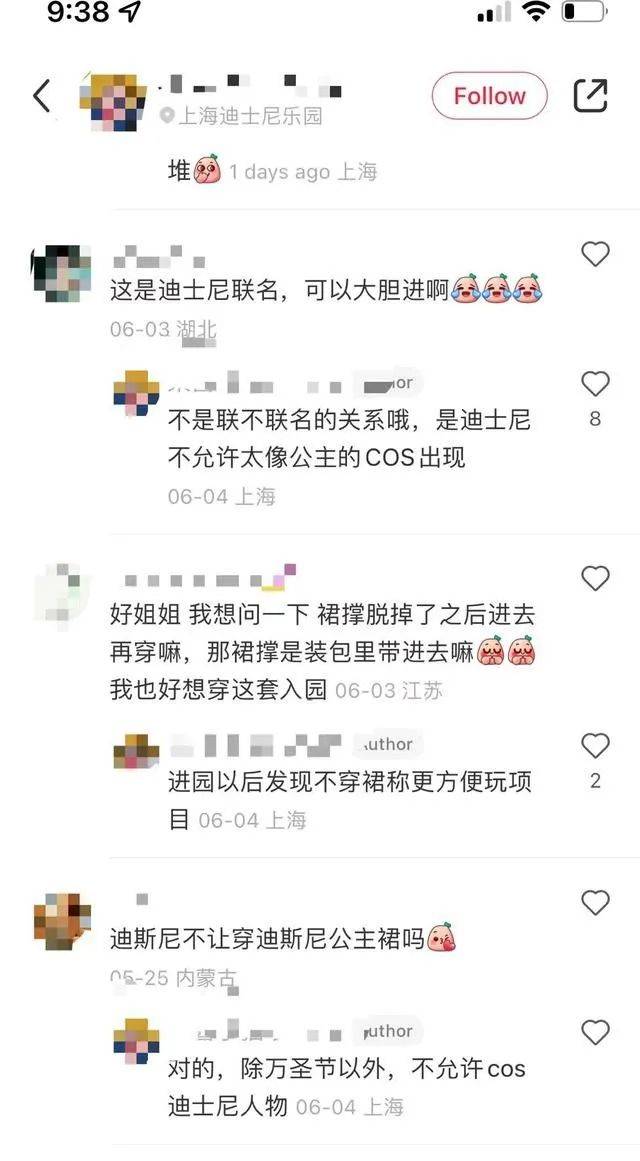 除了上述网友,还有不少网友反映穿该汉服品牌联名款无法进入迪士尼乐园:“除了万圣节期间,其他成人都不能穿这种服装的。”“迪士尼一直是有规定不能在除了万圣月以外的时候穿公主cos服(国内国外都这样),为了维护大家心中的童话形象。”