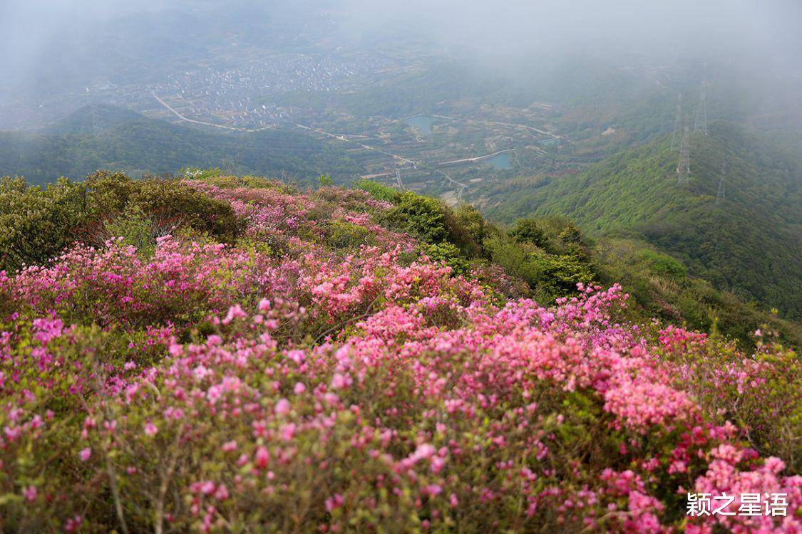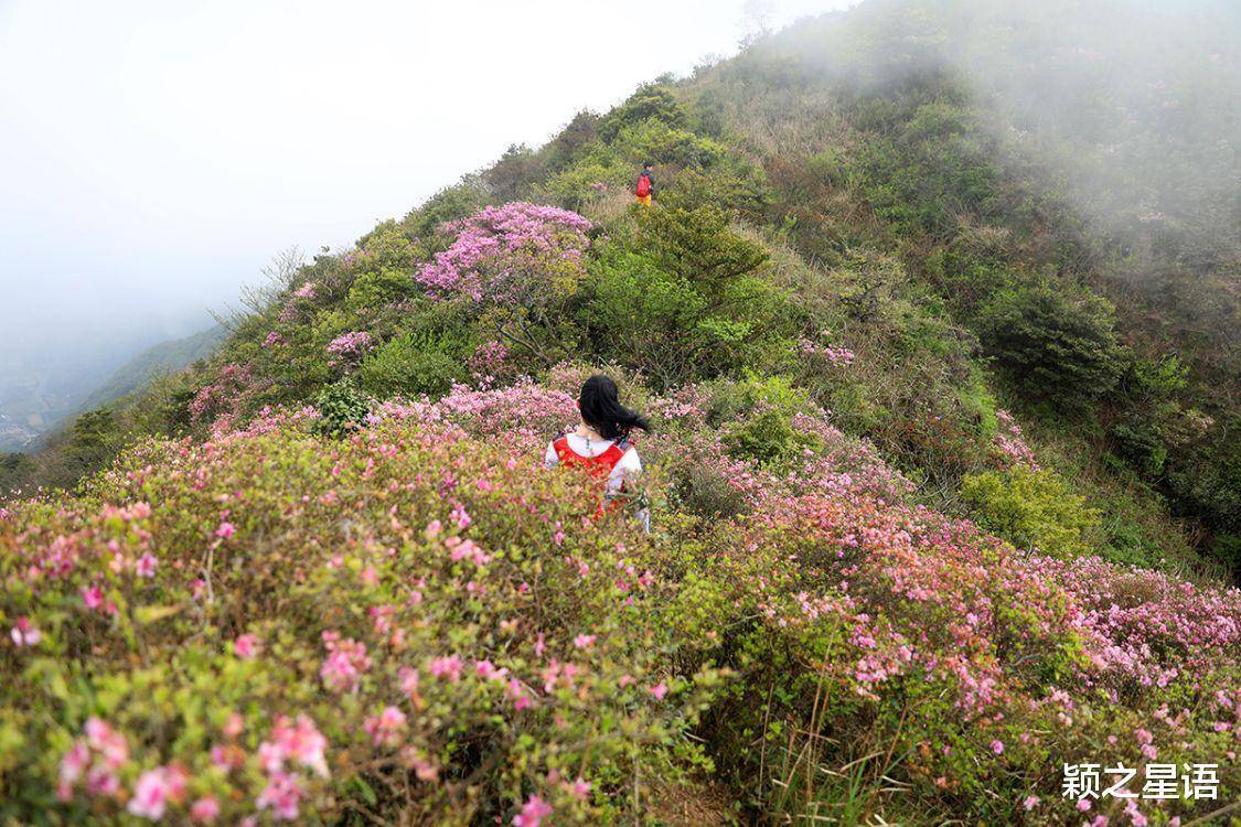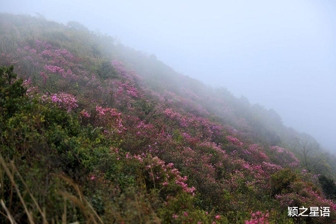 上山遇风云,一片杜鹃花海,随风打转,与晴天不一样。