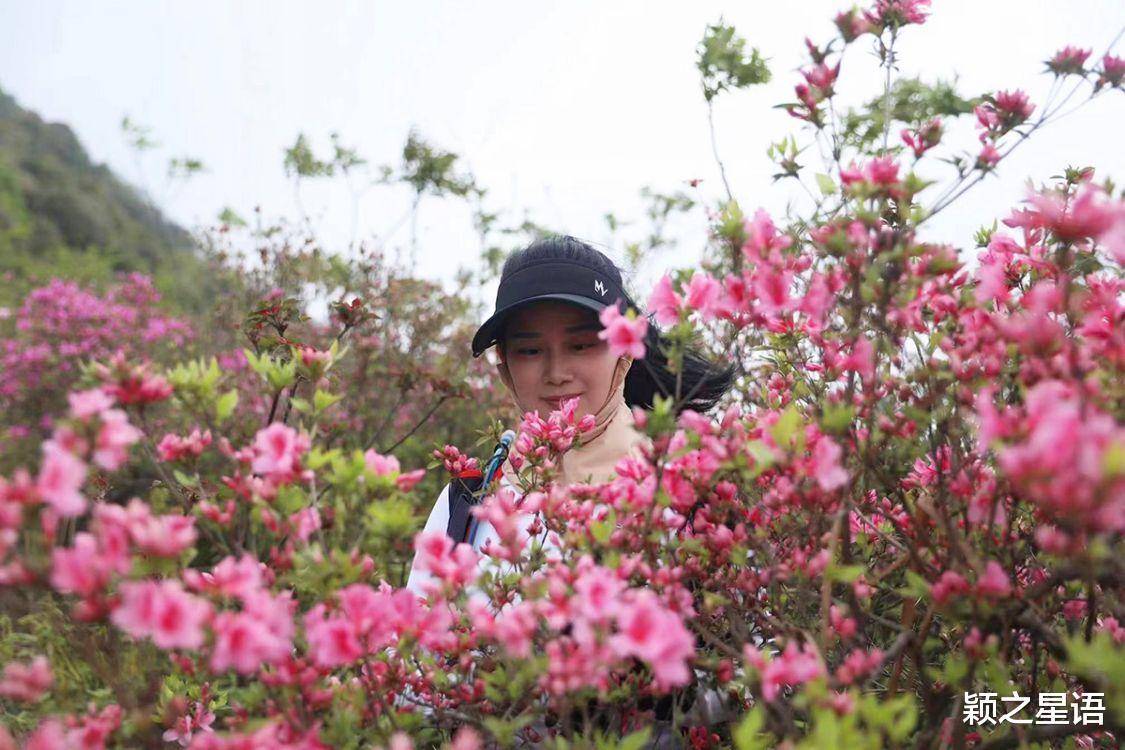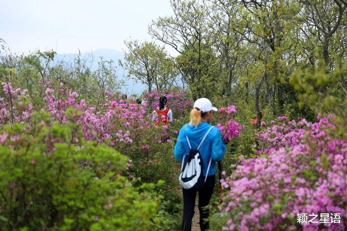 樱之沿着杜鹃花径前行,发现自己走得太快,浪费了美景,转身又走了。