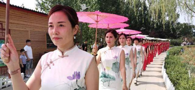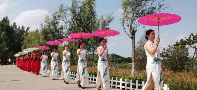 洪溢河畔,一位位旗袍美女略施粉黛,手持油纸伞,她们穿着红色、白色、绿色缎面、绣金色凤凰和牡丹的旗袍款款走来……她们举手投足的优雅,跟着音乐每一步准确无误的踩点,为洪溢河景区增添几分妩媚。