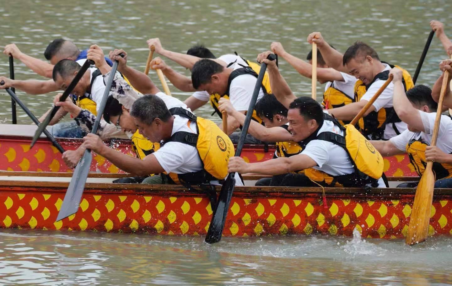 龙舟选手在太湖南岸罗溇港中挥桨破浪(央广网发 湖州市委宣传部供图)