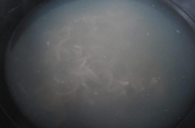 700克猪皮自然解冻备用。(猪皮都是每次炒菜切肉剩下的,储存在冰箱冷冻室里的。)