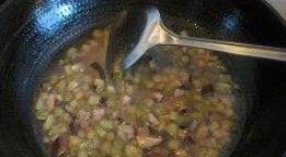 第8步,等臊子熟了,加入几滴香油,适量鸡精进行调味即可。
