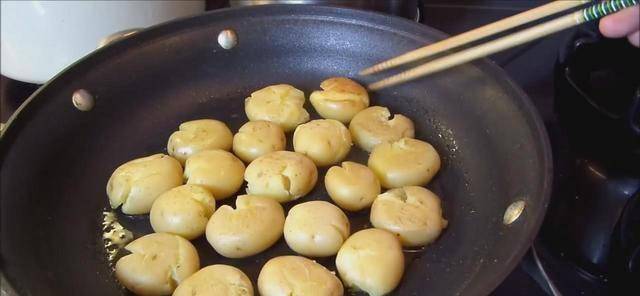 香煎土豆,做法简单,味道香辣,是一款非常不错的小零食。追剧的时候、无聊的时候、嘴馋的时候,吃一些,感觉都特别棒!土豆准备好之后,在平底锅中刷油,油温加热,用筷子把小土豆一个个摆放在平底锅中,然后小火慢煎,用筷子不停的翻个,以免糊掉。