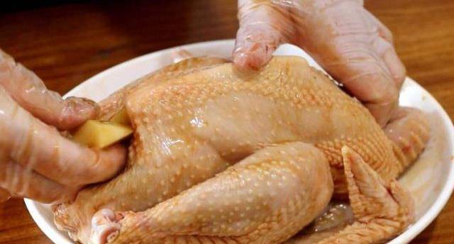 宰杀处理干净鸡毛,接着从鸡的背部剖开掏出鸡内脏清洗干净,需要用食盐把鸡的全身涂抹均匀,内外都要抹;然后包好保鲜膜放在冰箱冷藏2~4个小时的腌制时间。
