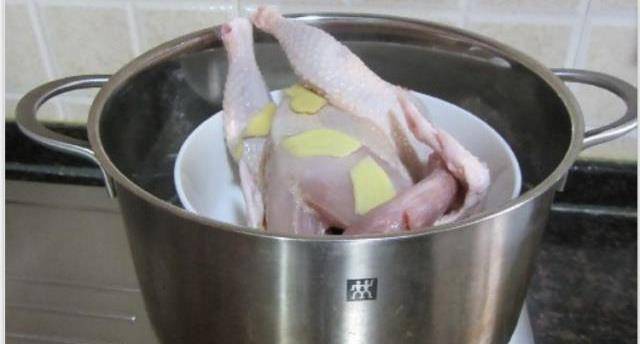 然后就可以把鸡放在炖盅内了,盖好炖盅盖,放入蒸锅中,隔水开大火炖20分钟左右,再转小火炖2小时即可。