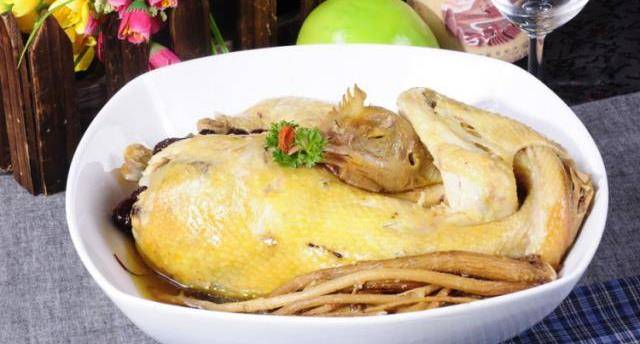 接着拿出鸡肉,把这些洗干净的中药滋补品塞进鸡腹内,腹部向上以及鸡头盘好,可以把鸡爪的尖部去掉,把鸡脚折回插在内侧。