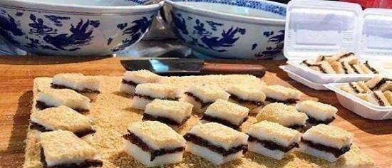 这点心由纯糯米糕和豆沙糕组成。回民街是西安游客必游的景点,街上有一家贩卖蜂蜜冻糕的流动摊贩。这种零食有玫瑰酱,桂花汁,蜂蜜,红豆沙,油炸白芝麻和白糖等多种口味和外观,深受女孩子们和糖果爱好者的欢迎。