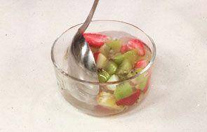 5 再将切好的水果浸泡在淡盐水中,备用。