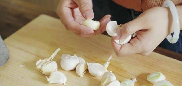 步骤二:接下来将生姜切成片状,大葱放在清水下洗干净再切成段状,大蒜去皮,干辣椒放在水中泡软再剪成段状备用(干辣椒之所以要提前放在清水中浸泡,是为了防止在之后烹饪的过程中炒糊)。