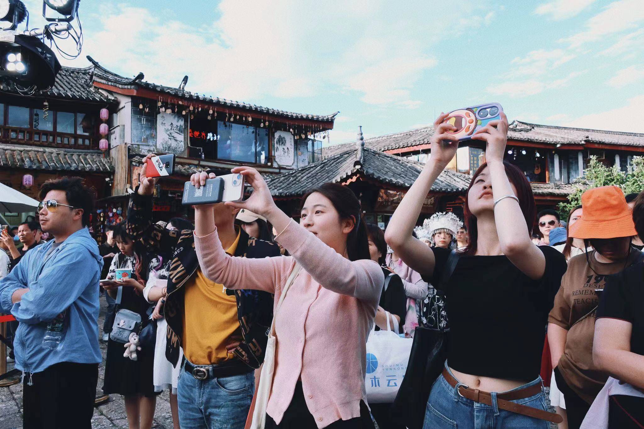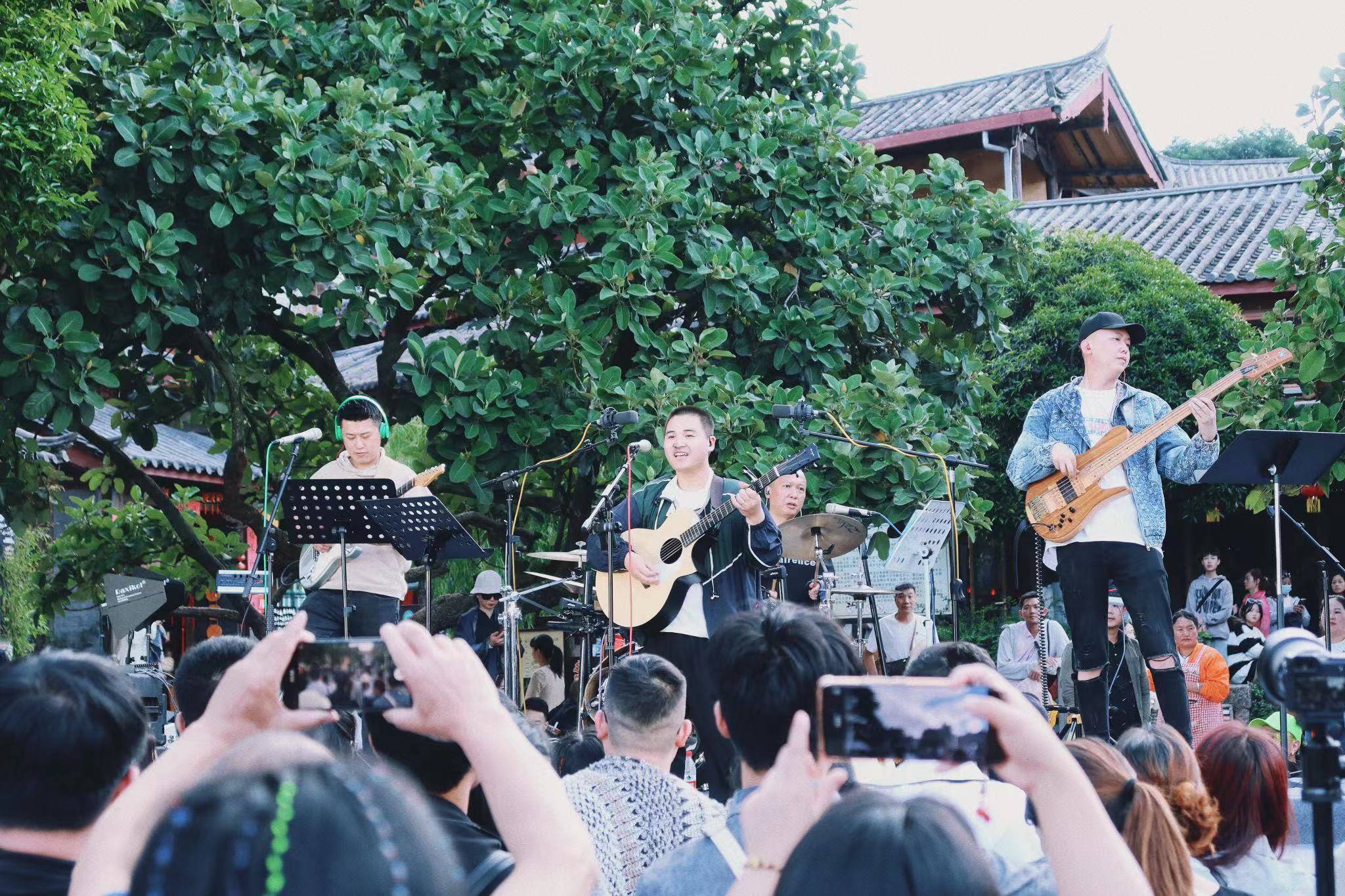 6月16日晚,丽江古城民谣广场在古城的中心四方街开唱。轻快的旋律,干净的歌词,不一会儿便吸引了一大批市民游客的驻足。