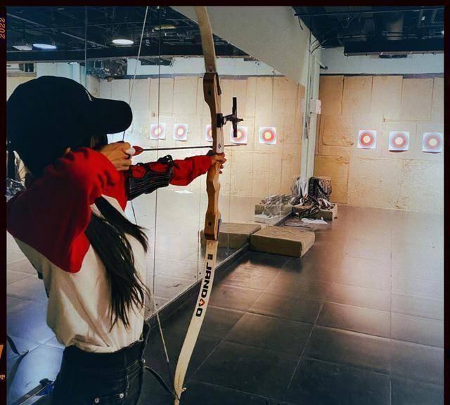 除了和张大大、林凡、宋祖儿等好友在一起玩之外,她也晒过去射箭馆玩的照片,但剧中总是百发百中,箭术高超的她,戏外真玩起来……全都脱靶了。