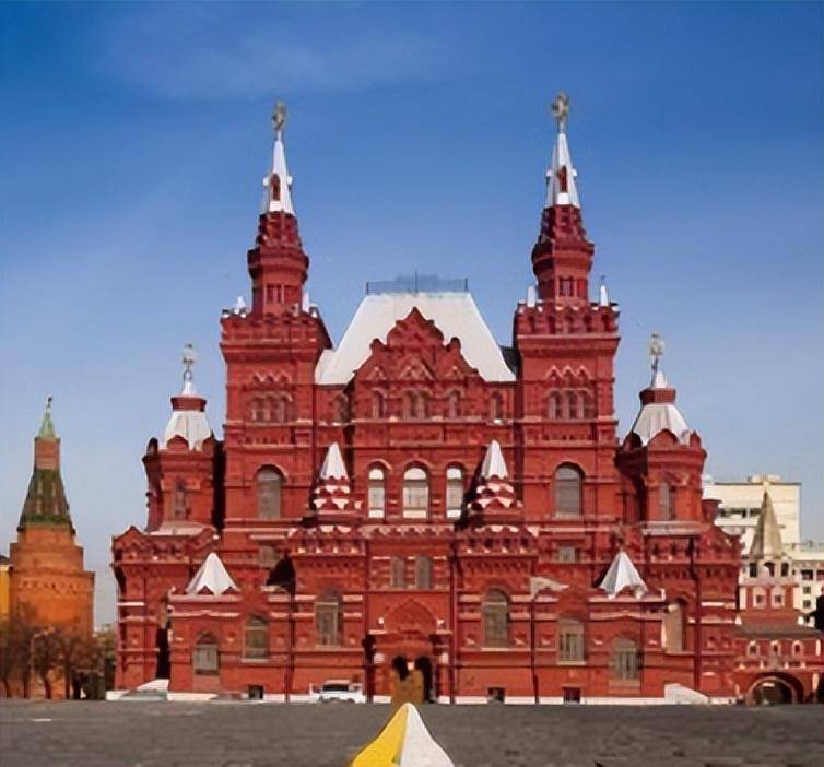 红场以其独特的建筑和丰富的历史事件而闻名于世,红场的南侧是克里姆林宫的城墙,北侧是俄罗斯国家历史博物馆,西侧是著名的圣巴素大教堂,东侧是高大的商业建筑——高地百货商店。