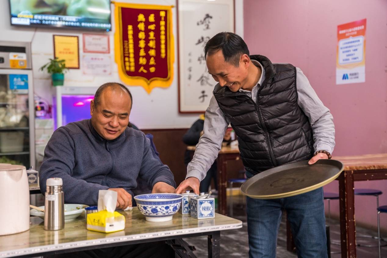 饺子馆老板李恺是陕西武功人,在西安做餐饮30年了。去年疫情以来,李恺的店陷入困难境地,他把饺子馆一部分隔出来,开了家快递驿站,给大家免费保管快递,后来又在店前卖起了盒饭。在李恺和员工的共同努力下,饺子馆继续经营起来,还解决了8个人的就业。2020年6月,李恺在饺子馆门口张贴免费吃饺子的告示,给困境中的人们送去了温暖。