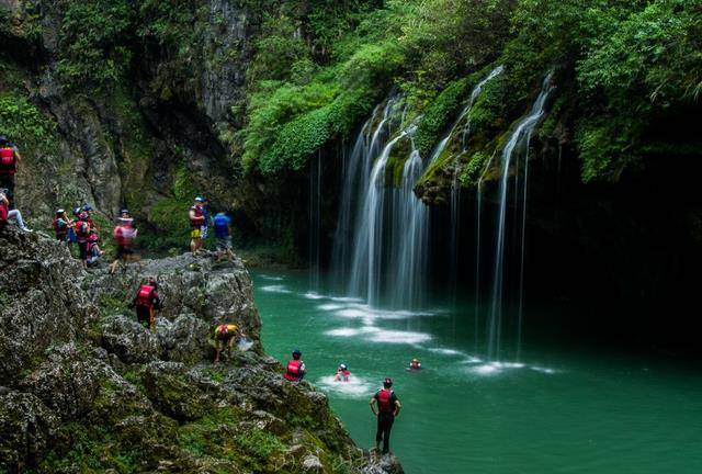 每个人在进入景区之前都能感受到一种强烈的自然感。放眼望去,山上植被茂密,奔腾的马拉河从山间流过。这里的水非常清澈,富含矿物质,沉入潭底,呈现出耀眼的色彩,宛如九寨沟的奇观。