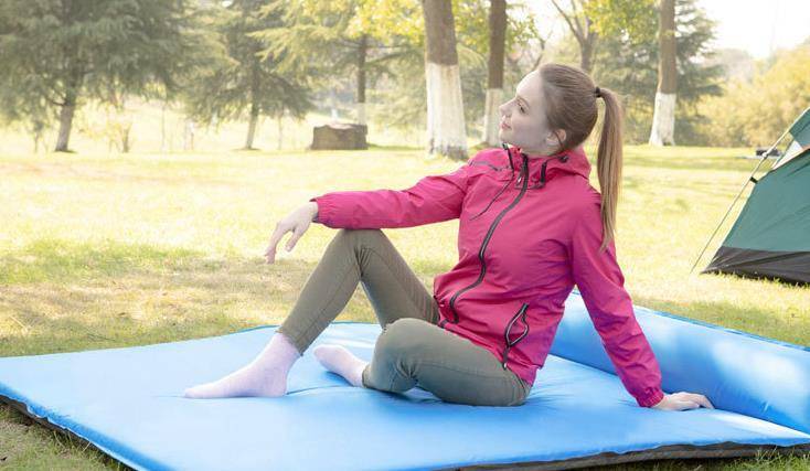 气垫床接地面本身有四层设计材料,分别是耐磨防水层、PVC材料、防浸膜、防爆加厚膜。需要注意的是,这款充气床垫可以双面使用。春天睡在集聚表面上可以让你保持温暖,而夏天睡在冰冷的PVC表面上可以有效地让你降温。